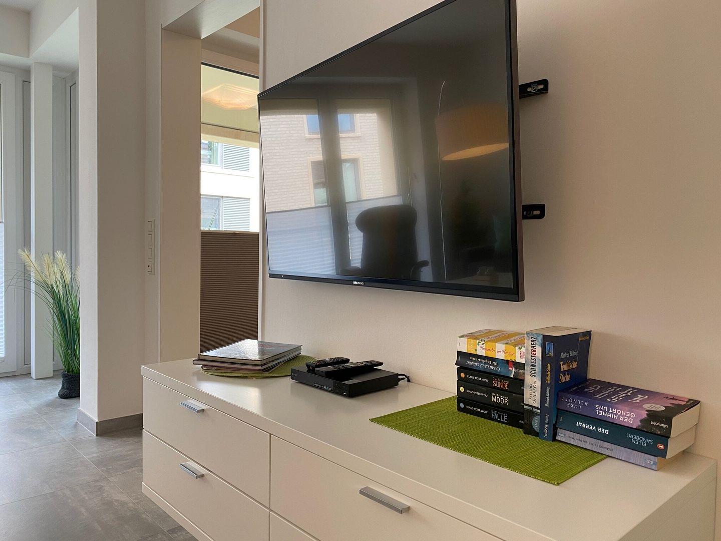 Die Wohnung verfügt über ein geschmackvoll eingerichtetes Schlafzimmer und ein modernes Badezimmer mit einer bodengleichen Dusche, die Ihnen einen komfortablen Aufenthalt garantiert. Die offene Küche zum Wohnzimmer ist mit hochwertigen Geräten ausgestattet, darunter ein Ceranherd, Backofen, Mikrowelle und Geschirrspüler. Hier können Sie Ihre kulinarischen Fähigkeiten entfalten und leckere Gerichte zubereiten. Alles, was Sie dafür benötigen – vom Kühlschrank bis zur Kaffeemaschine – ist vorhanden. Genießen Sie Ihre Mahlzeiten am großzügigen Esstisch oder auf dem Balkon mit Blick ins Grüne, der einladend zum Verweilen einlädt.
