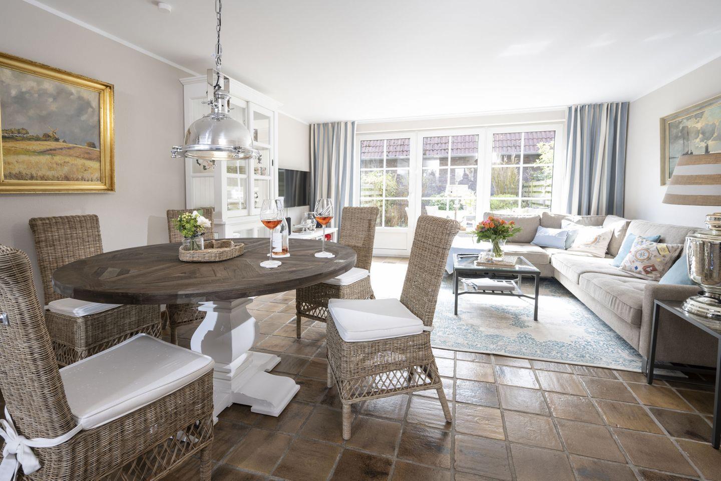 Wohnen Sie in einem modernen, exklusiven, gemütlichem Ferienhaus mit einer stilvollen, hochwertigen Einrichtung der Firma Rivièra Maison und Sauna.