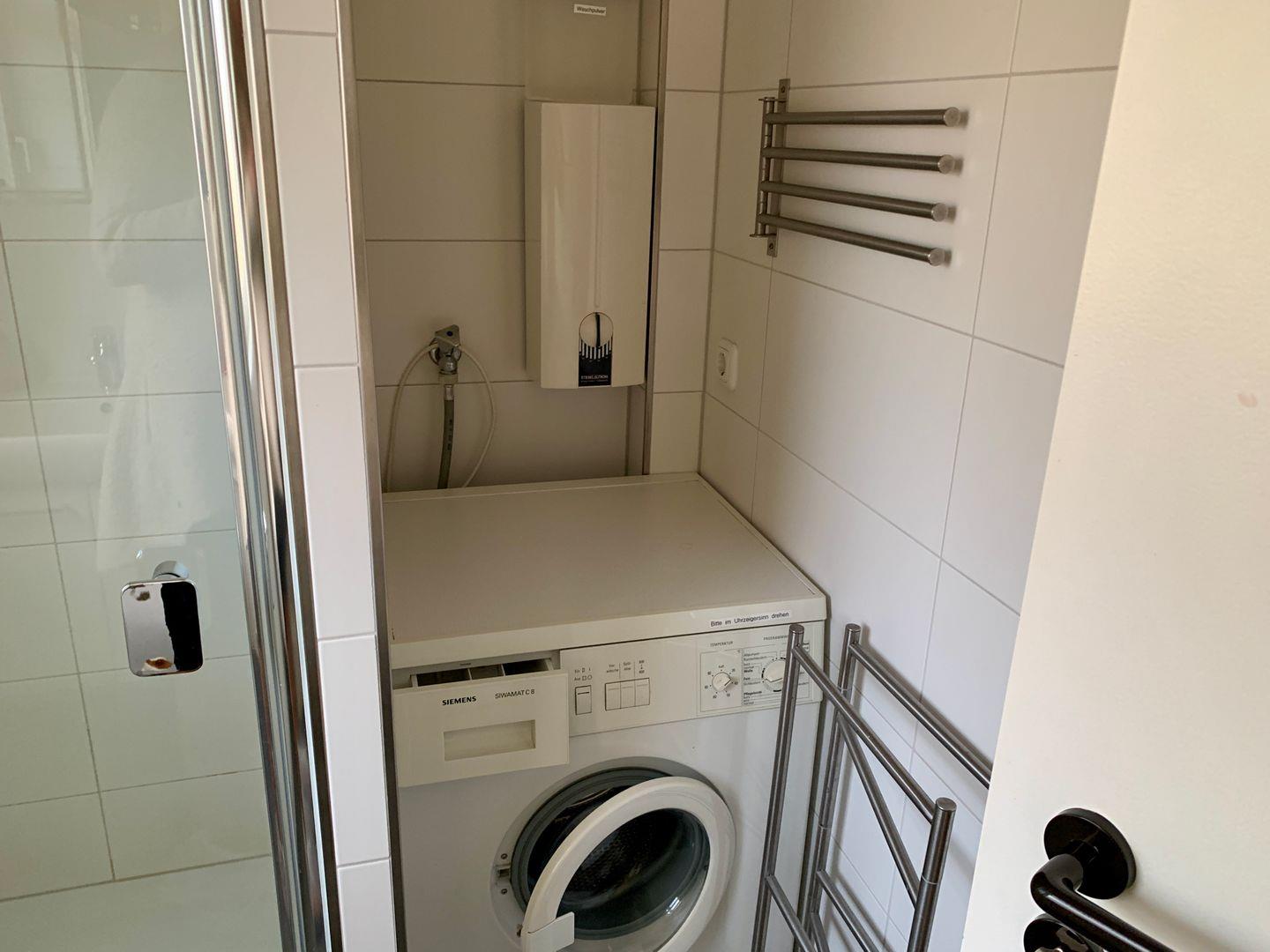 Im Wohnbereich erwarten Sie eine gemütliche Sofaecke mit Sofa und Sessel, ein Esstisch sowie TV, Radio und WLAN. Für längere Aufenthalte oder Reisen mit leichtem Gepäck ist auch an praktische Details gedacht: Waschmaschine, Wäscheständer, Bügeleisen und Bügelbrett sowie Staubsauger sind vorhanden.