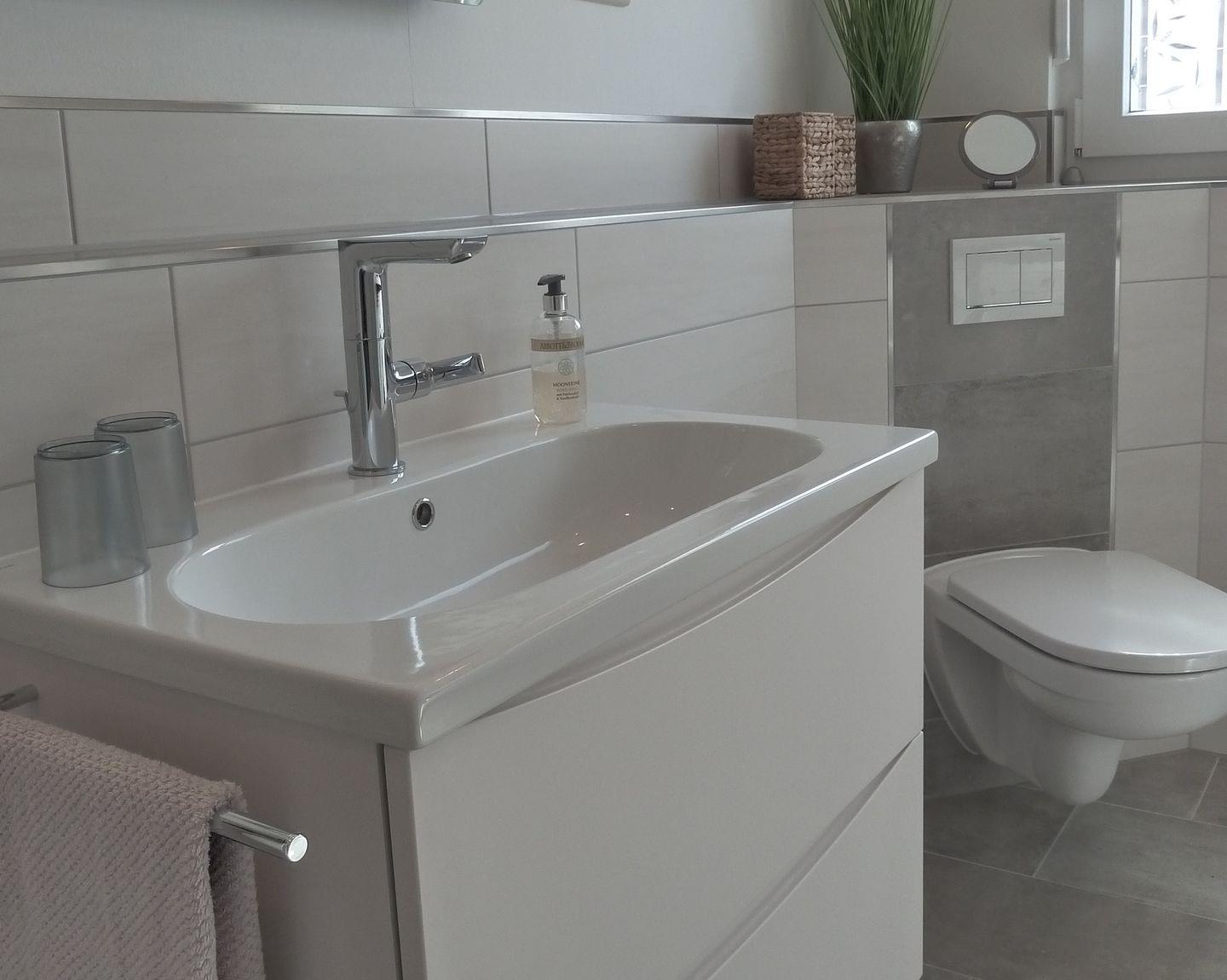Das Tageslichtbad finden Sie modern gestaltet mit einem ebenerdigen Duscheinstieg vor. Die Dusche hat eine Größe von 90 x 160 cm. Im Badezimmer finden Sie des Weiteren eine Waschmaschine, einen Trockner, ein WC und einen Waschtisch mit Schubladenunterschrank. Hier ist jetzt eine kleine Wohlfühloase entstanden.
