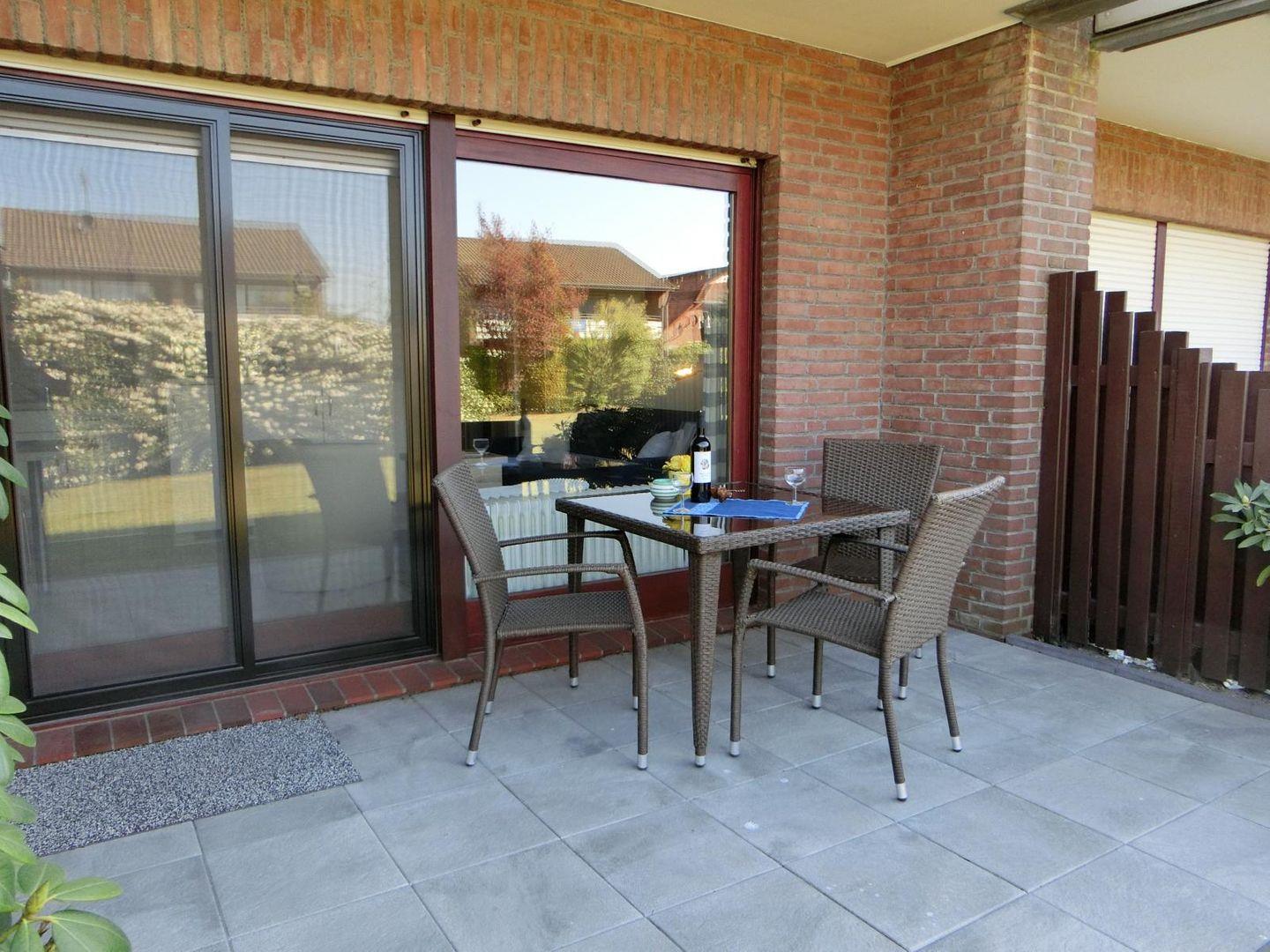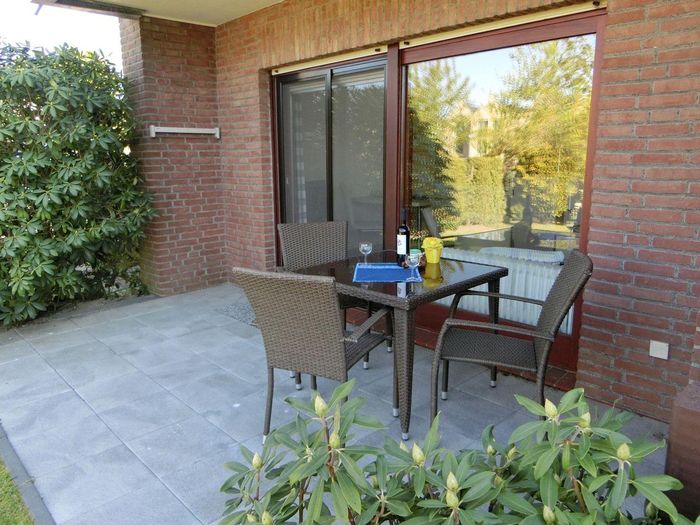 Das Appartement ist 35 qm groß und ebenerdig. Es besteht aus einem Wohn- Küchenbereich mit einer großen Schiebetür zur Terrasse und einem herrlichen Blick in den großen Garten. Diese Terrasse lädt zum Verweilen und Entspannen ein. Durch ihre Nordlage ist die Wohnung auch an heißen Tagen wohl temperiert.