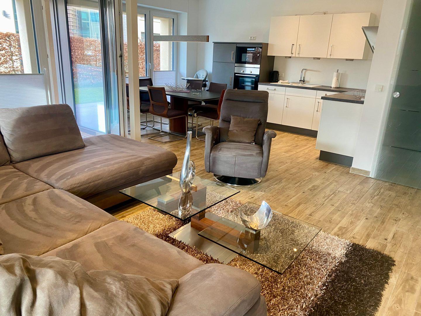 Es steht ein äußerst großzügiger Wohn- und Essbereich (50qm) zur Verfügung. Die offene und exklusive Designküche oder der Riesen-Flatscreen mit Netflixzugang wird Sie begeistern (insgesamt 3 Fernseher).