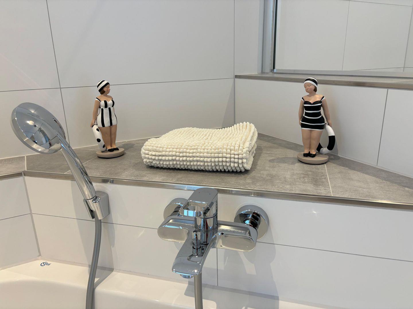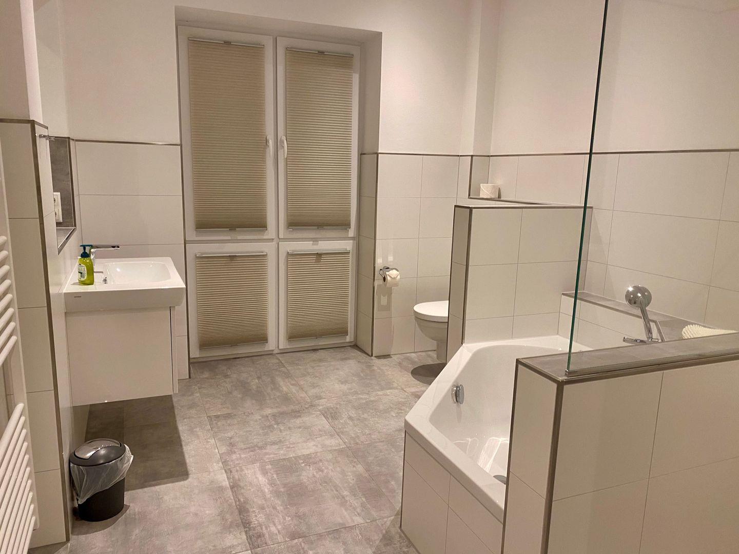 Ein exklusives barrierefreundliches großes Badezimmer mit begehbarer Dusche (Regendusche) und Badewanne wird Sie ebenfalls begeistern.