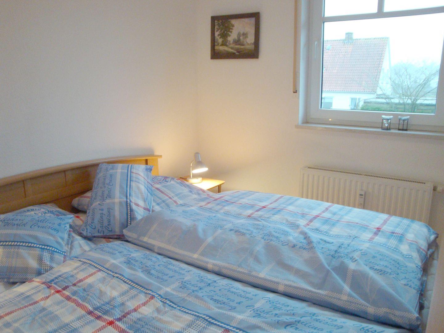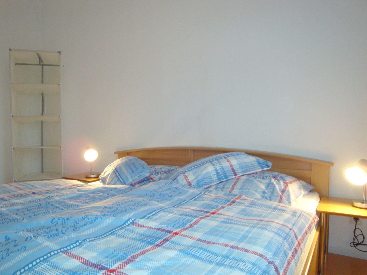 1. Schlafzimmer: Elternschlafzimmer mit Doppelbett (Maße: 180 x 200 cm), Kleiderschrank, Rolladen zur Verdunkelung