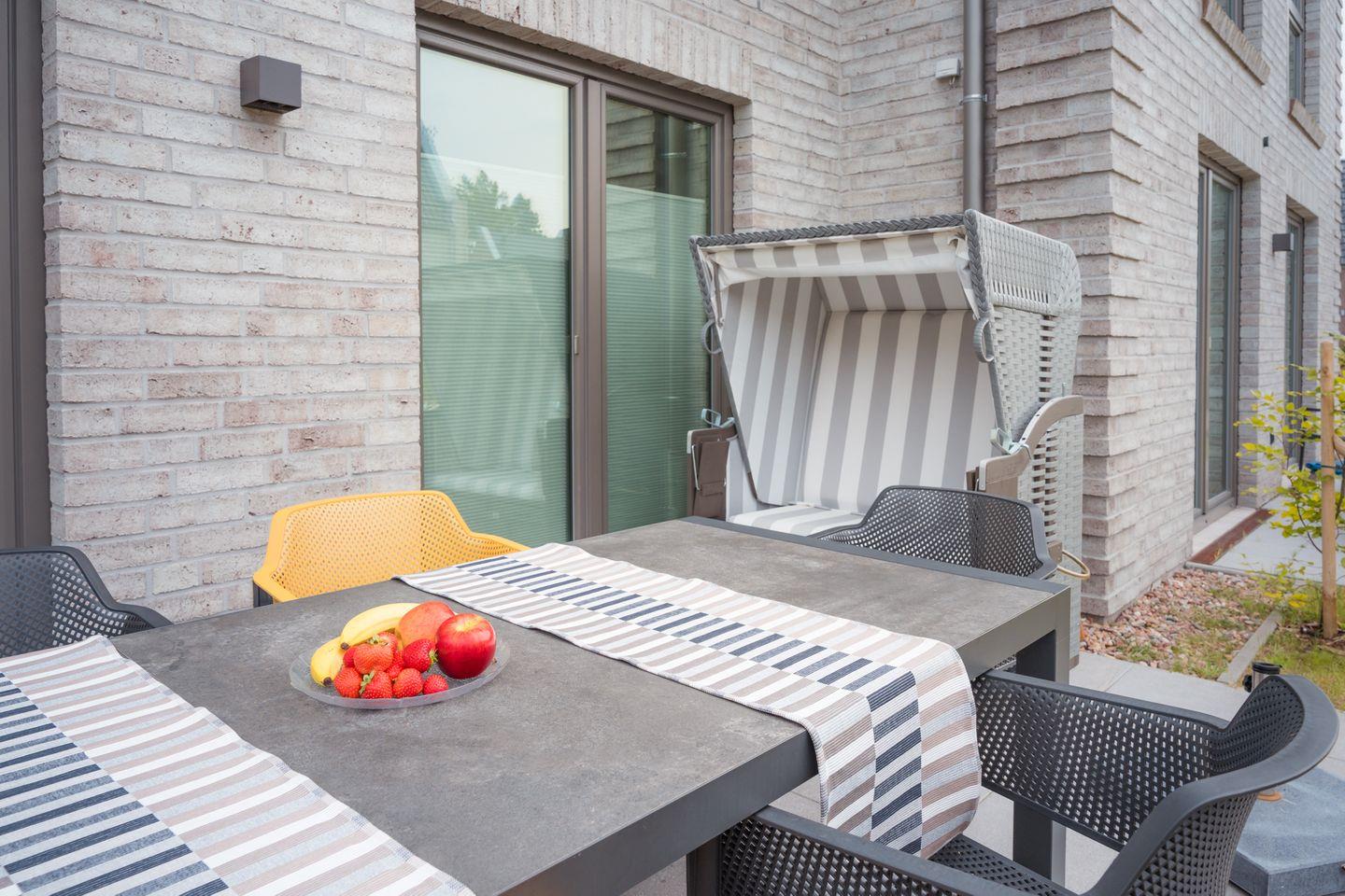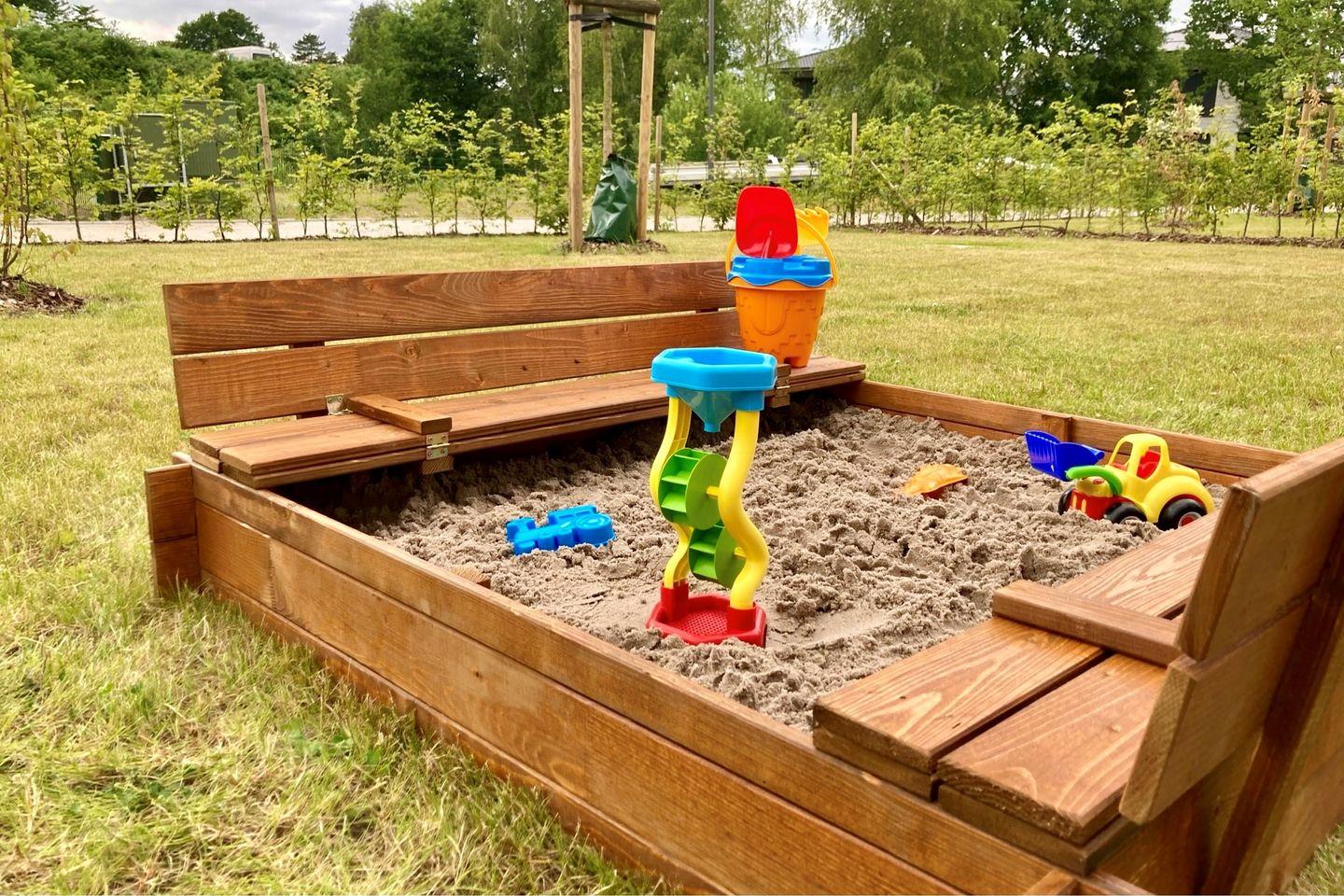 Ausstattung Außen: Sitzgarnitur mit Tisch, Strandkorb, Terrassenliege, Elektrogrill, Sandkiste mit Sandspielzeug, Bollerwagen, PKW-Stellplatz