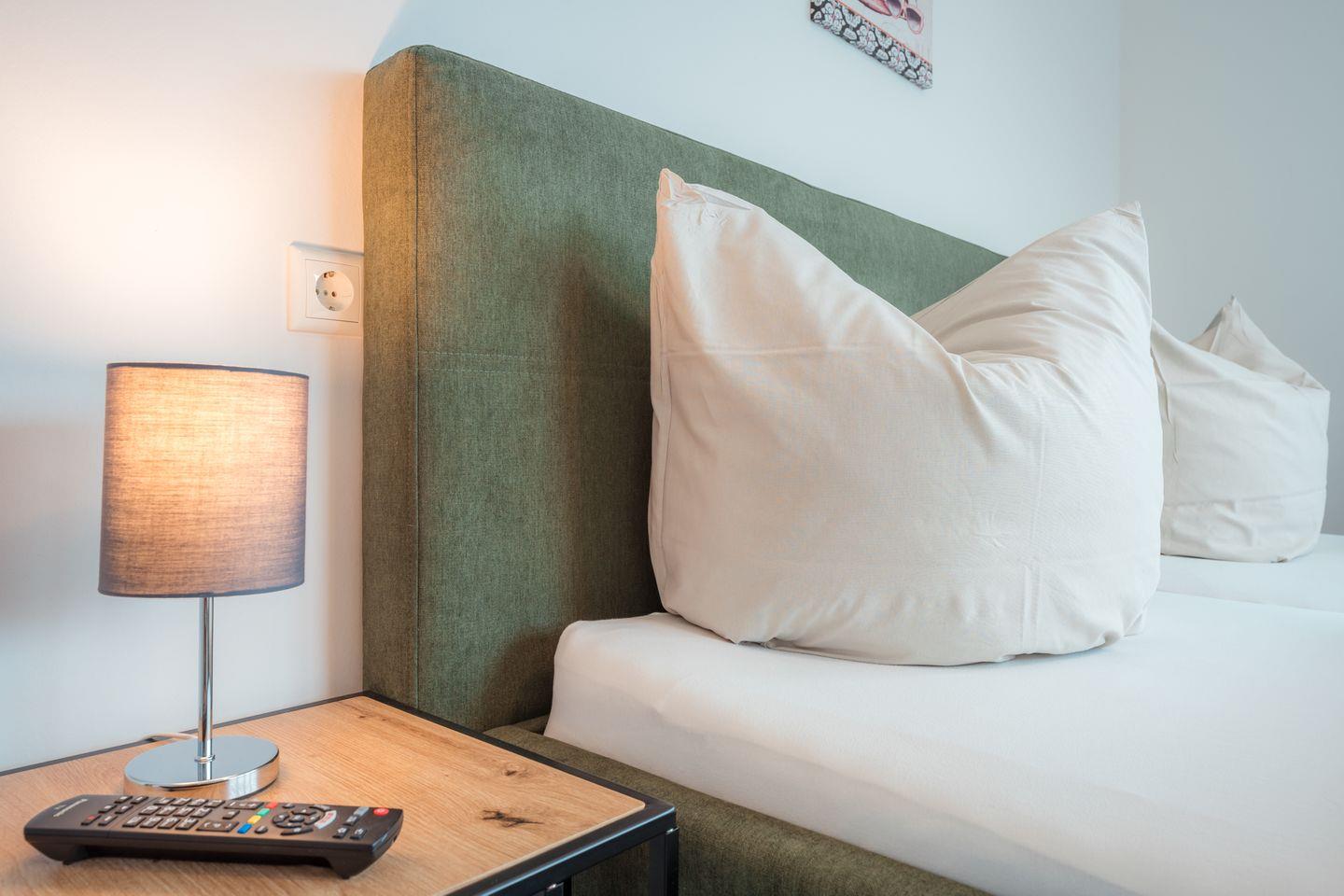 Schlafzimmer 1: Doppelbett (2 Einzelmatratzen 90 x 200 cm), Leselampen, Kleiderschrank, Verdunklungs-Plissees, Flachbildfernseher, Bettwäsche auf Anfrage