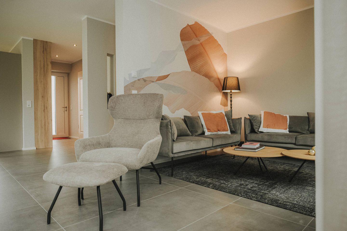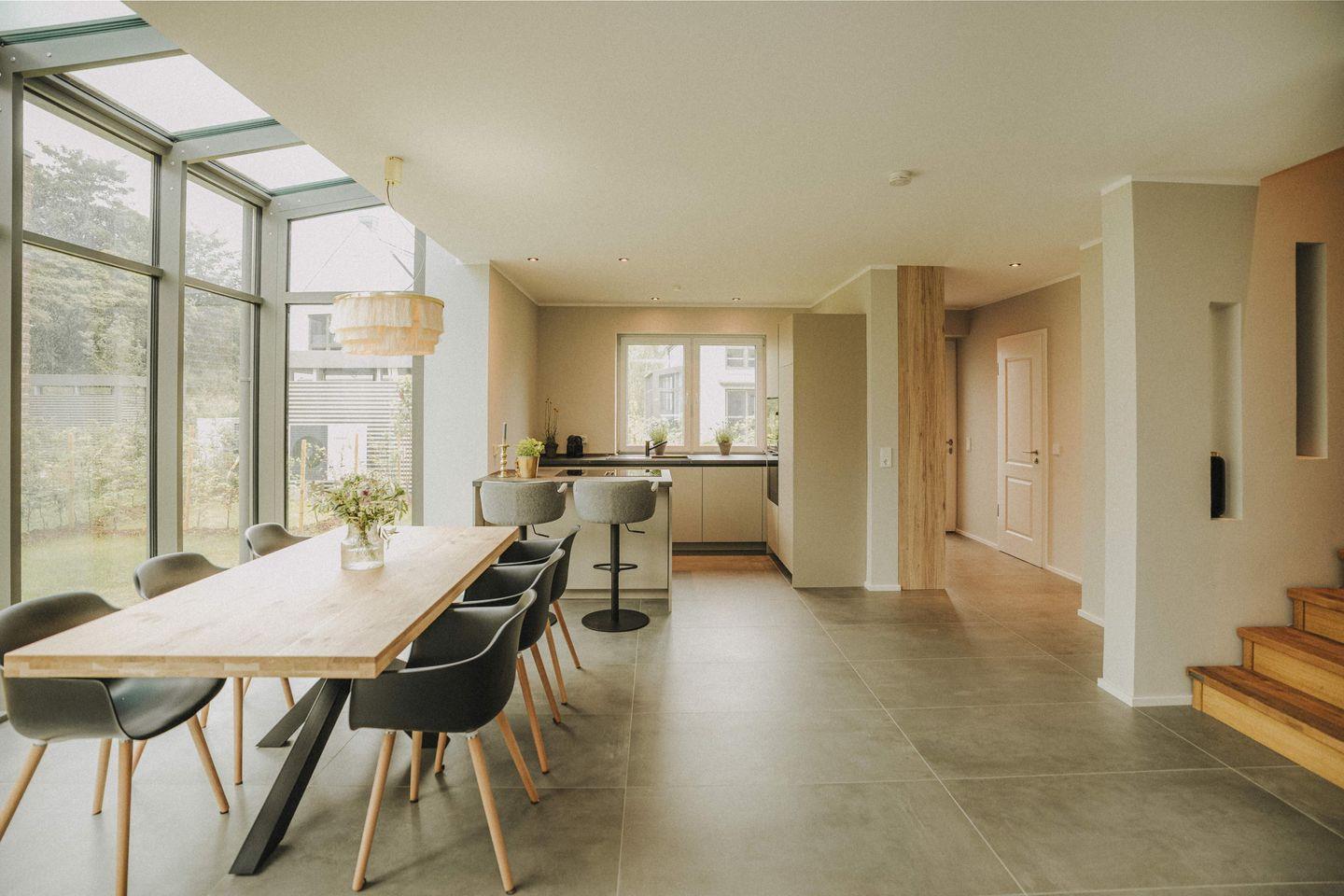 Ästhetik und Qualität zieht sich durch das ganze Haus, ob drinnen oder draußen. In dem Wohnraum ist eine offene Küche integriert, mit hochwertigen Geräten von Markenherstellern. Ob Geschirrspüler, Ofen, Herd mit integrierter Dunstabzugsfunktion, Kühl- und Gefrierschrank, Wassersprudler, Toaster, Wasserkocher, Nespressomaschine oder die gesamte Ausstattung mit Weingläsern, Geschirr, Besteck, Gläsern und allem was dazu gehört – Sie werden nichts vermissen.