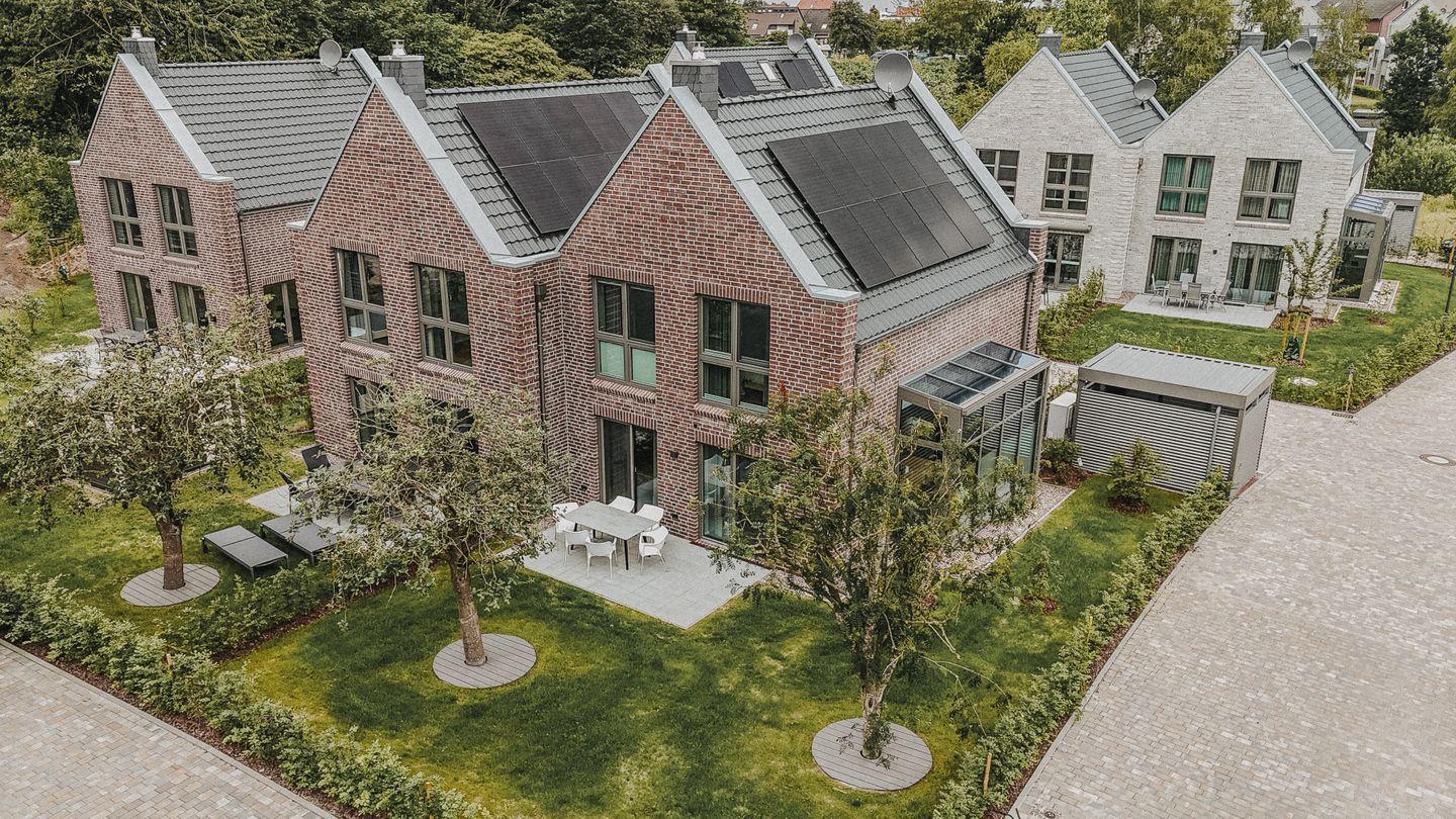 Der abschließbare Fahrradschuppen, eigener Pkw-Stellplatz vorm Haus und die private Wallbox komplettieren die hochwertige Ausstattung.