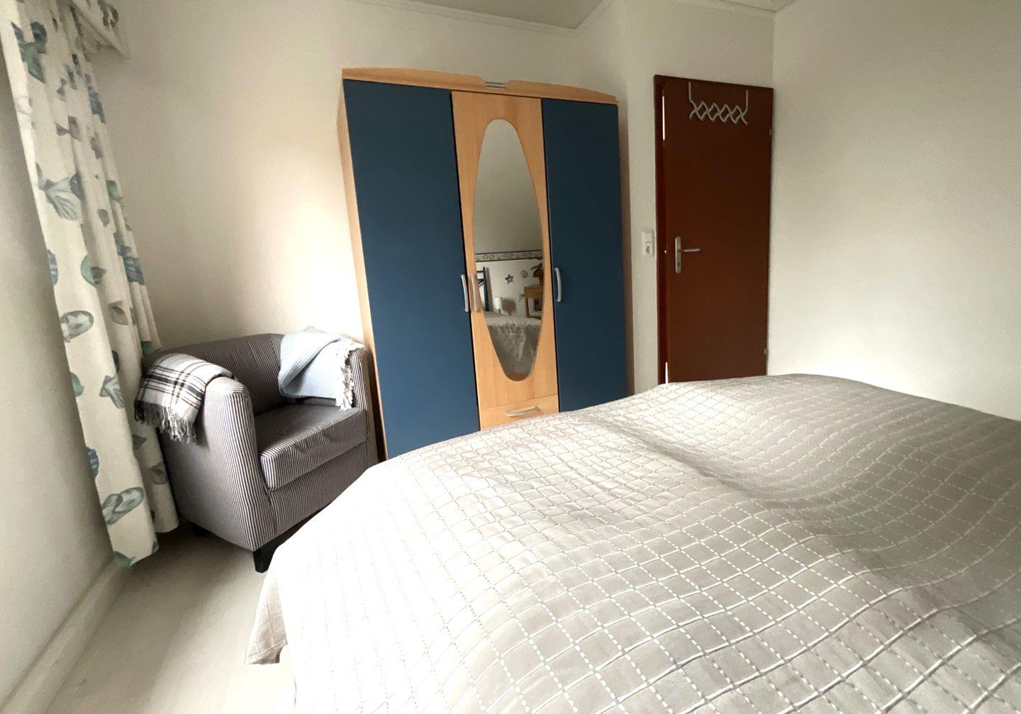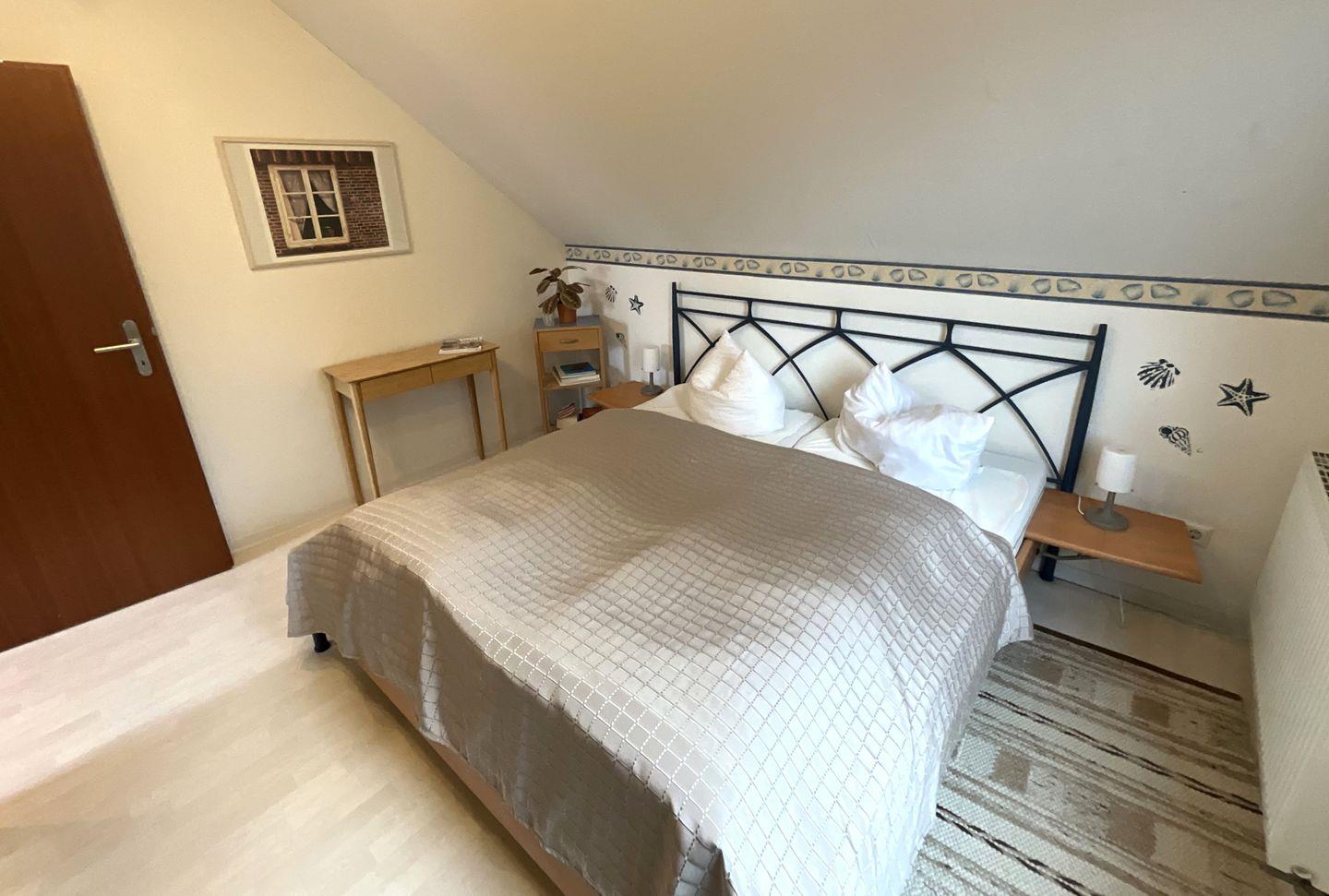 Die Ferienwohnung Friesenblau OG im 1. Stock bietet auf 60 m² Platz für 2 Gäste. Sie verfügt über 1 Schlafzimmer, Wohnzimmer mit Sofaecke und Essbereich sowie eine geschlossene Küche.
