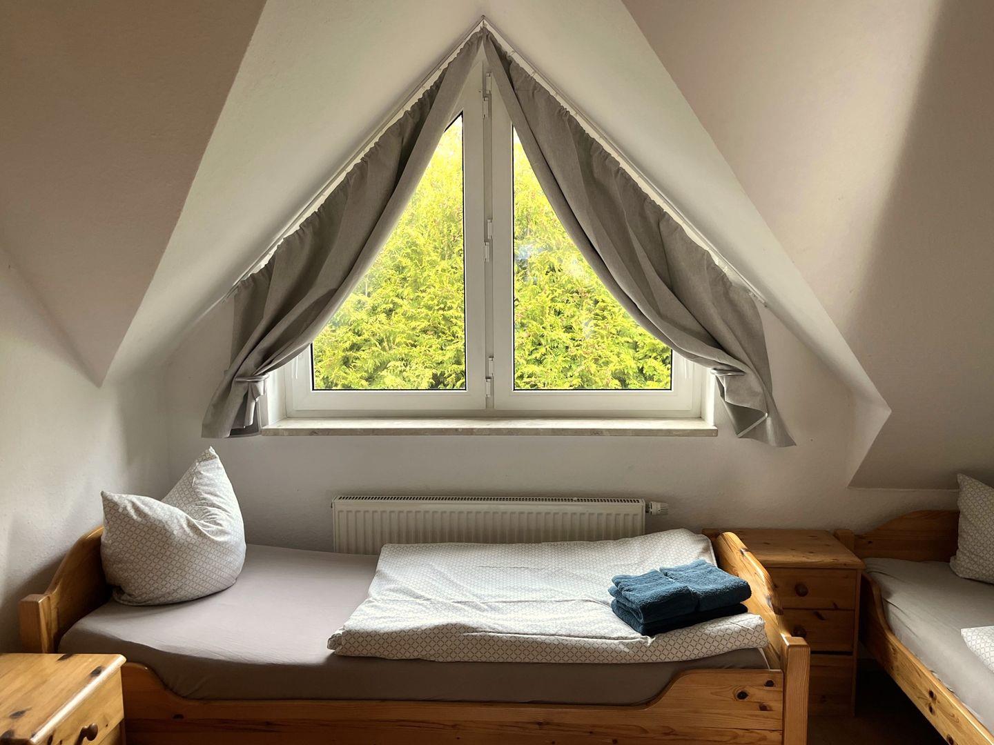 Im ausgebauten Dachstudio befindet sich das dritte Schlafzimmer mit zwei Einzelbetten.