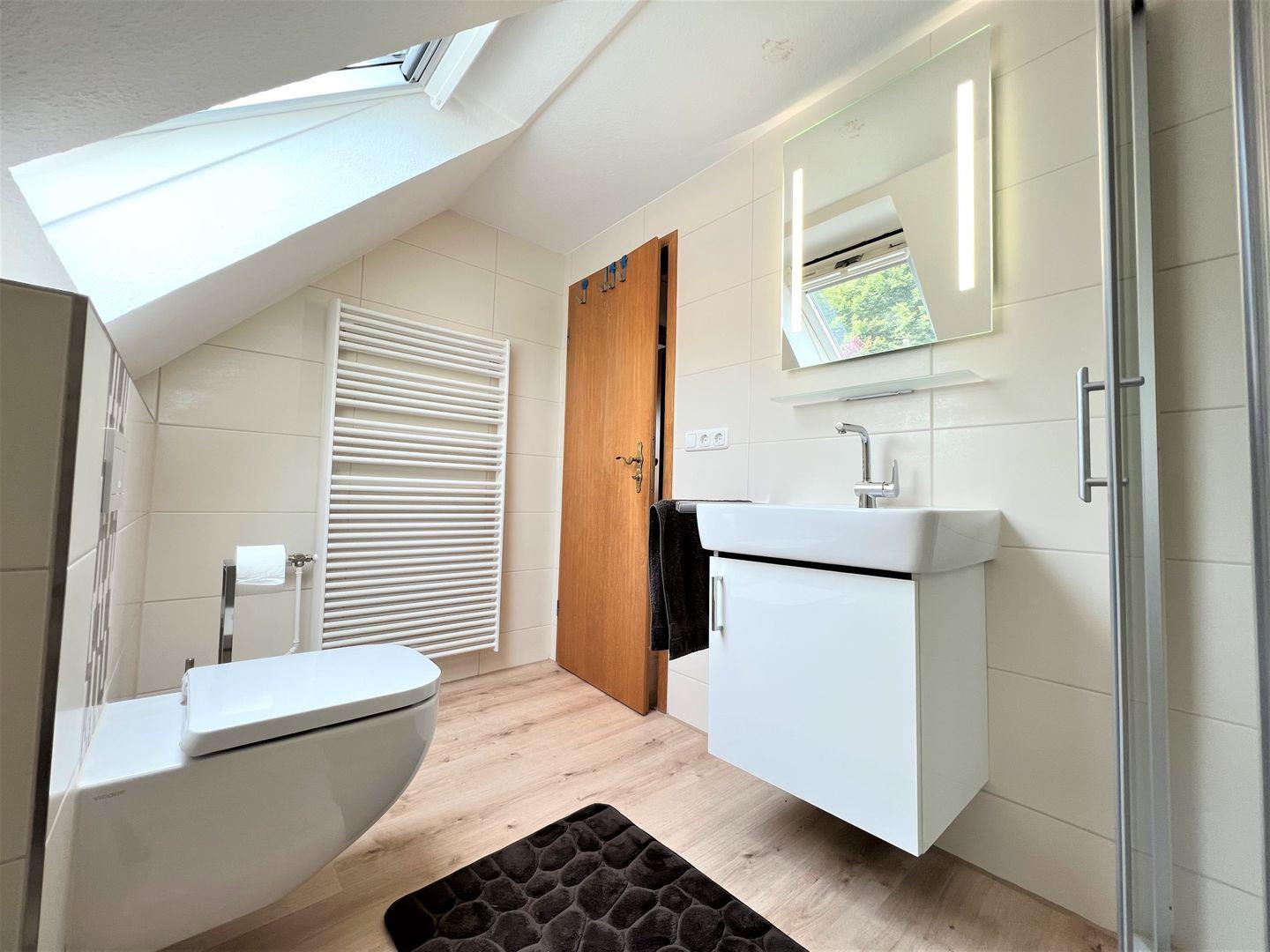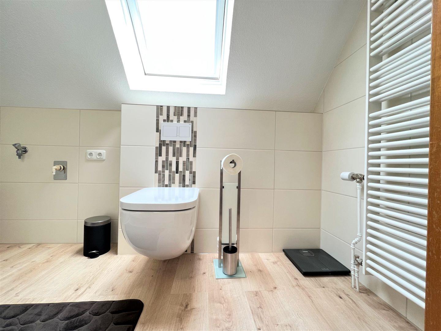 Zusätzlich befindet sich im Erdgeschoss ein weiteres WC und ein von außen zugängiger großer Abstellraum - ideal für Ihre Fahrräder. 2 PKW - Stellplätze gehören zum Haus.