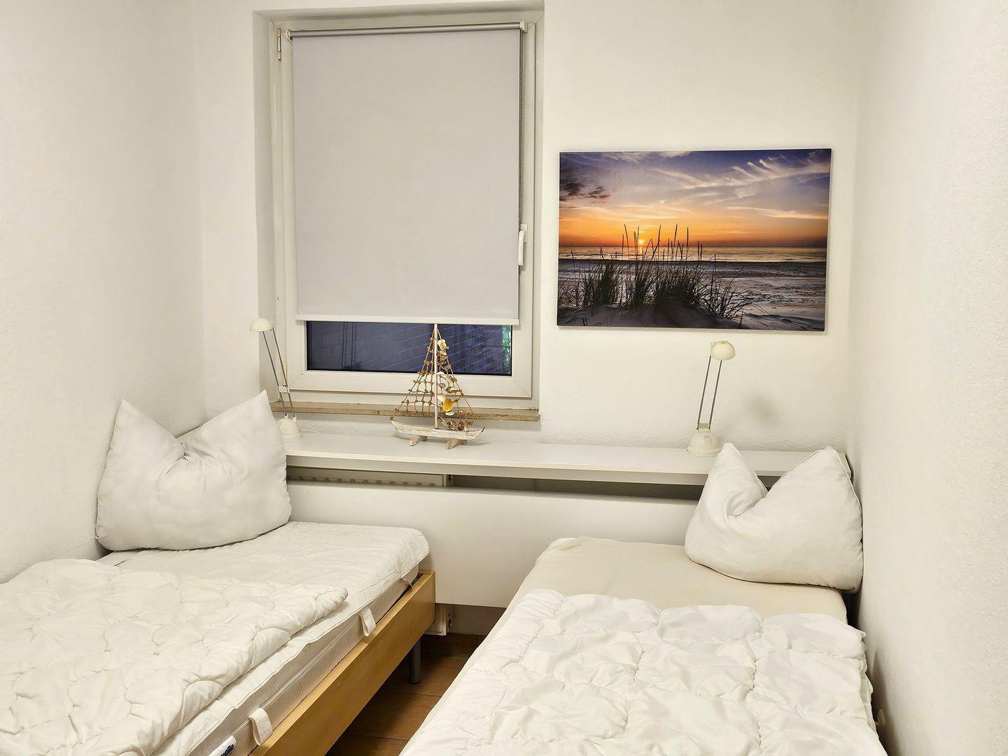 Es stehen zwei Schlafzimmer zur Verfügung. Das Elternschlafzimmer mit Ehebett sowie das zweite Schlafzimmer mit zwei Einzelbetten.