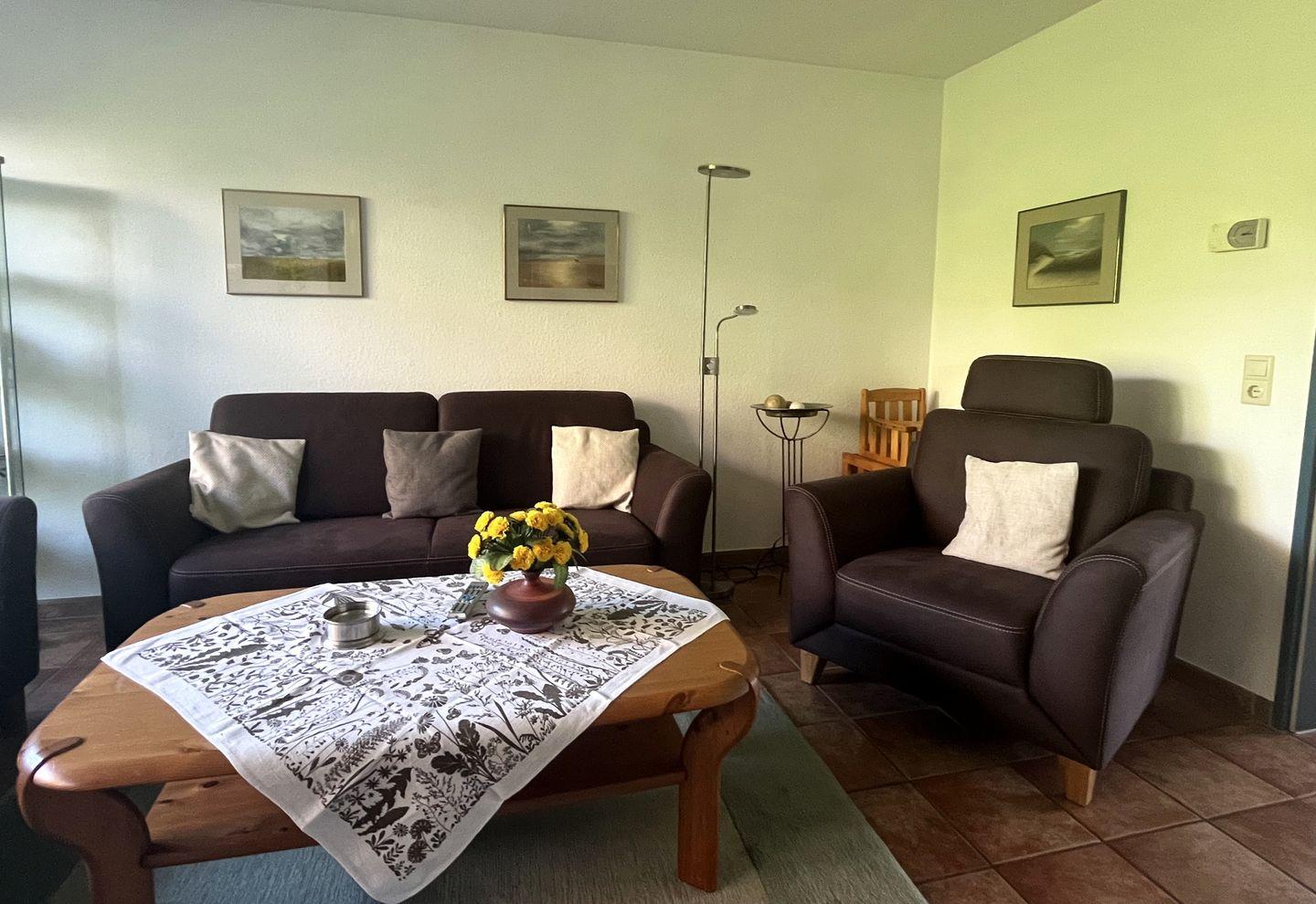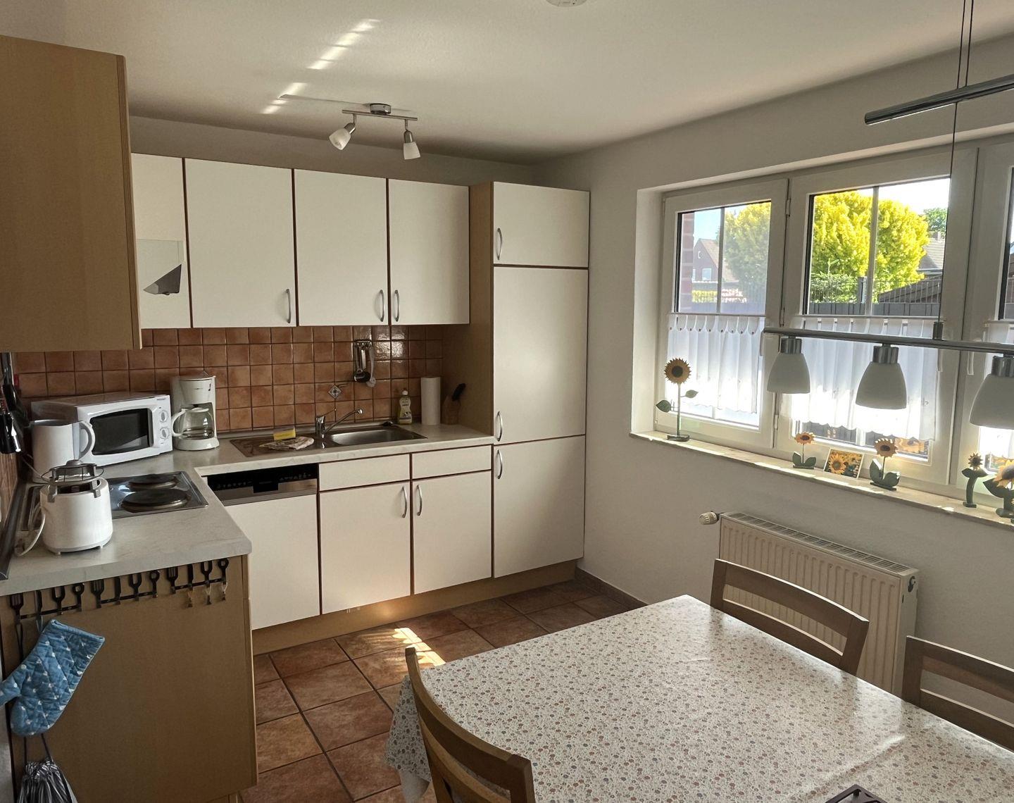 Ankommen und Wohlfühlen, entspannen Sie im geräumigen Wohnzimmer mit großer gemütlicher Couch, genießen Sie die Ruhe auf der komplett geschlossenen Terrasse oder treffen Sie sich in der separaten Wohnküche zur friesischen Teezeit.