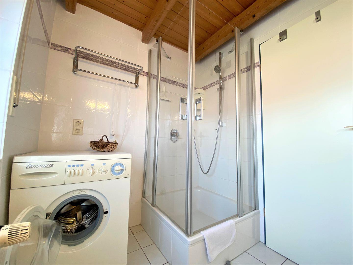 Ein vollwertiges Tageslicht-Duschbad mit Waschmaschine sowie ein zusätzliches Gäste-WC steht Ihnen im Haus ebenfalls zur Verfügung.