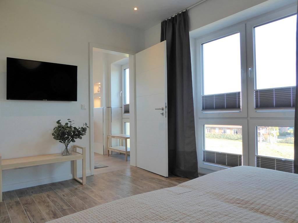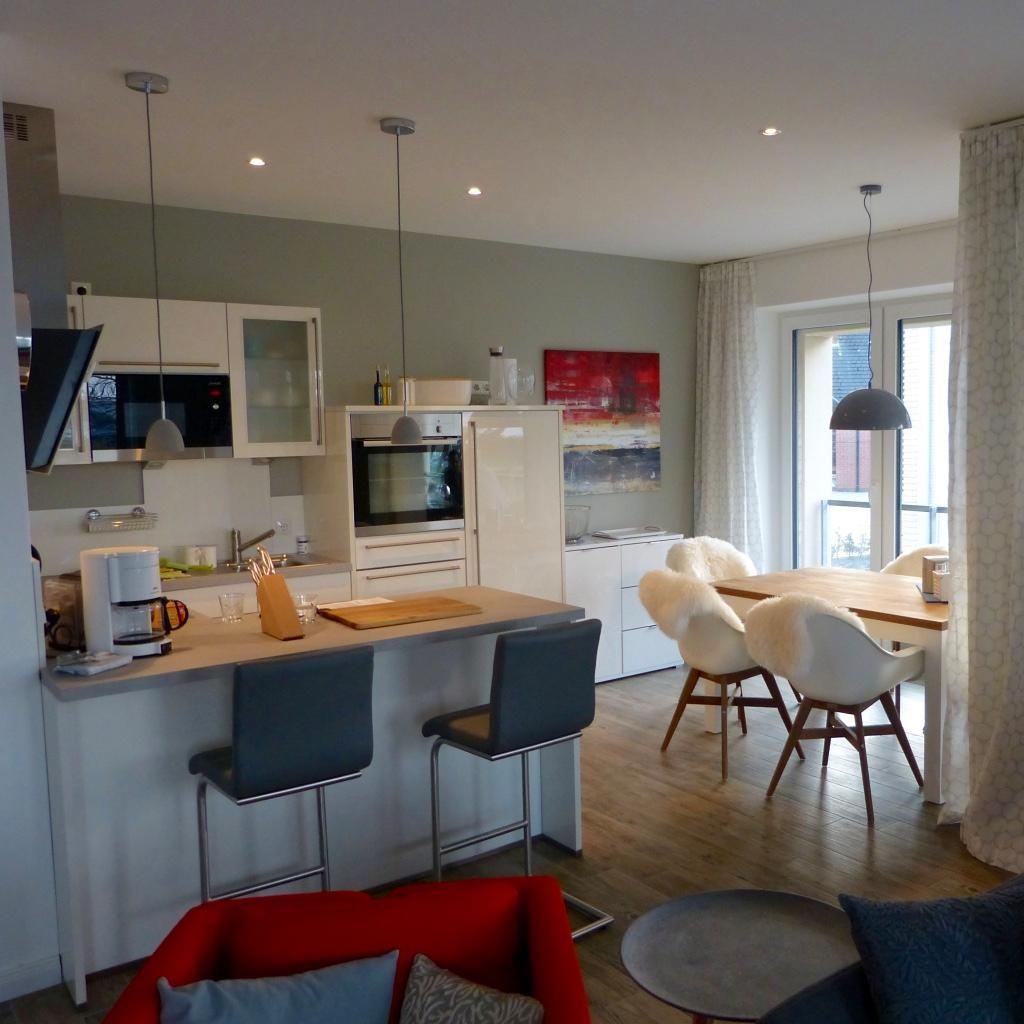 Allgemein: ca. 104m², max. 4 Personen, Luxuriös ausgestattete 3-Zimmer-Wohnung mit großzügiger Terrasse, Infrarot-Sauna, Gas- Kamin, 2 Schlafzimmern, 2 Bädern und direktem Meerblick, PKW-Stellplatz - befindet sich in unmittelbarer Hausnähe, Fahrradabstellraum, Nichtraucherwohnung, keine Haustiere, barrierefrei, allergikergeeignet