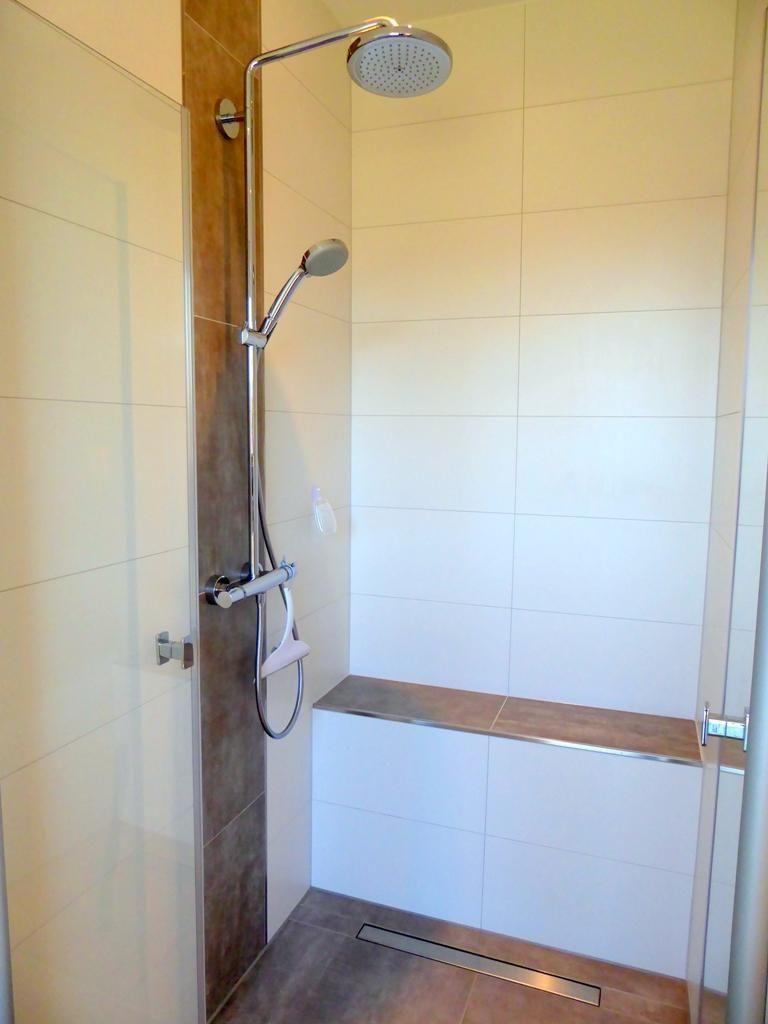 Vom Elternschlafzimmer geht es über zum eigenen Traumbad mit großer, begehbarer Sommerregendusche und einer innovativen Infrarotkabine. Der beleuchtete, große Spiegel über dem Waschtisch mit praktischen Nischen vollendet das harmonische Gesamtbild.