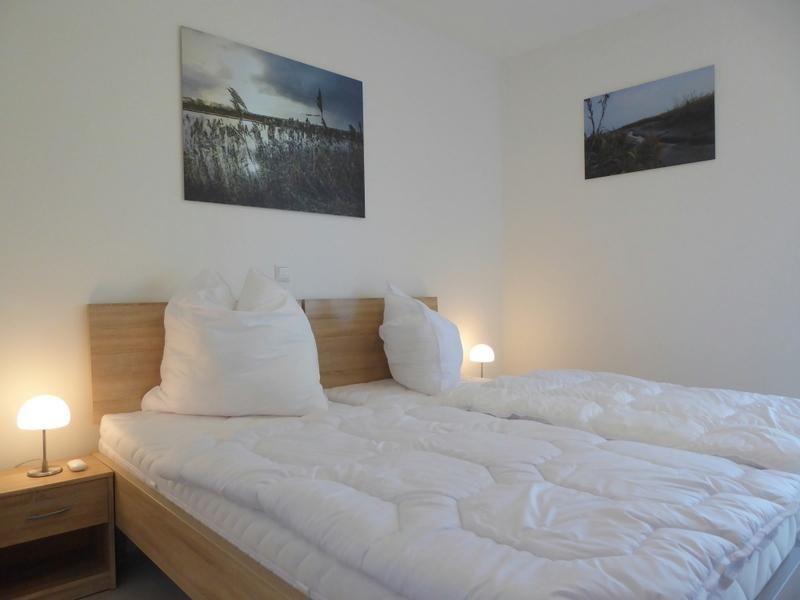 Schlafzimmer Süd: zwei Betten (Maße: 90 x 200 cm), als Doppelbett oder einzeln gestellt
