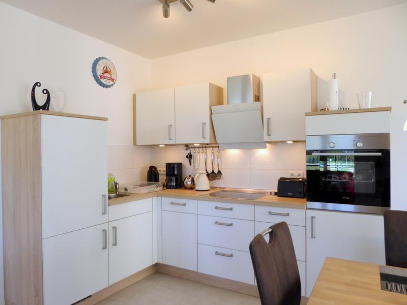 Küche und Haushalt: Vollausgestattete Küche mit E-Herd, Ceranfeld, Kühlschrank mit Tiefkühlfach, Kaffeemaschine, Wasserkocher, Esstisch drinnen und draußen