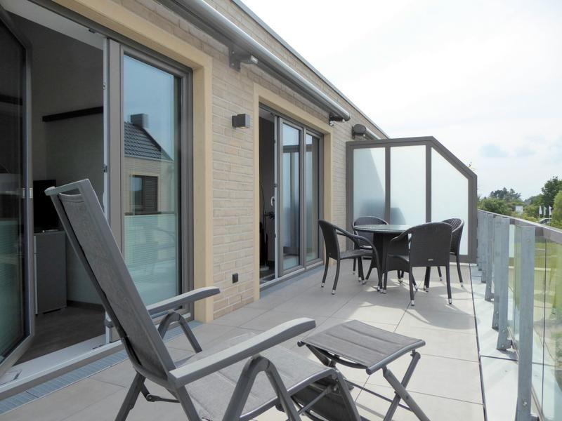 Diese komfortabel und modern gestaltete Penthouse-Wohnung für maximal 4 Personen überzeugt mit einer großzügigen Dachterrasse und großer Markise in unmittelbarer Deichlage!