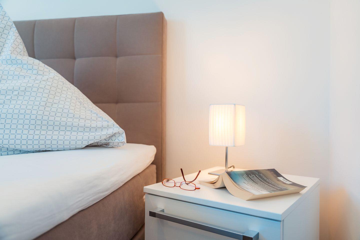 In dem Penthouse befinden sich zwei Schlafzimmer mit je einem Boxspring-Doppelbett (mit durchgängiger Matratze). Extra hohe Komfortmatratzen mit zusätzlichen kuschelig-weichen Toppern sowie Fenster mit lärm- und wärmedämmender Dreifachverglasung sorgen für entspanntes Schlafen. Beide Schlafzimmer sind mit Full-HD-Flachbild-TV und Fliegengittern ausgestattet.