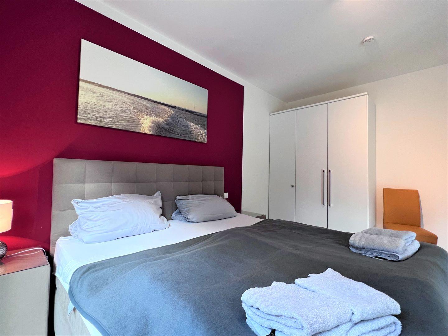 Vom Wohn-Essbereich gelangen Sie in Ihr Schlafzimmer. Das Schlafzimmer mit komfortablem Doppel-Boxspringbett und großem Kleiderschrank bietet viel Tageslicht, ist aber wie im Wohnbereich auch hier schnell und einfach zu verdunkeln dank blickdichter Vorhänge.