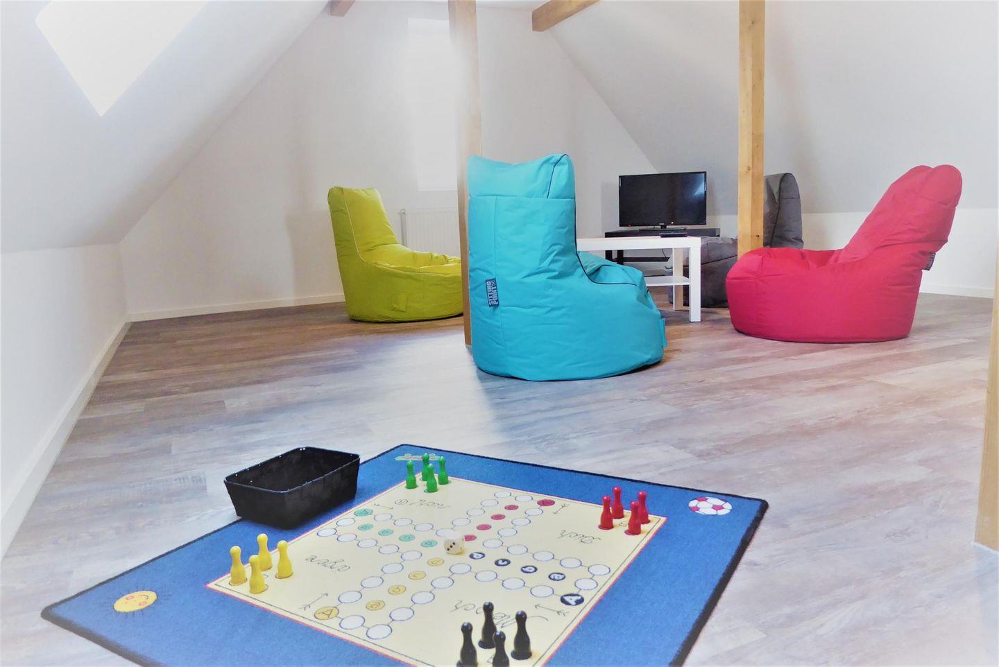 Spiel- und Aufenthaltsraum im Dachboden: Flachbildfernseher, 4 Sitzsäcke