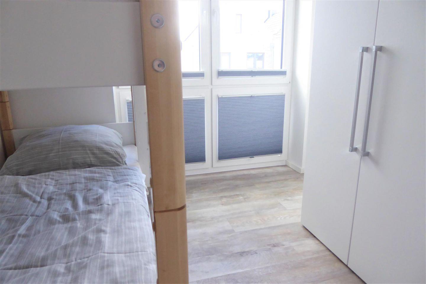 Schlafzimmer 3: Stockbett (Maße: 90 x 200 cm), Kleiderschrank
