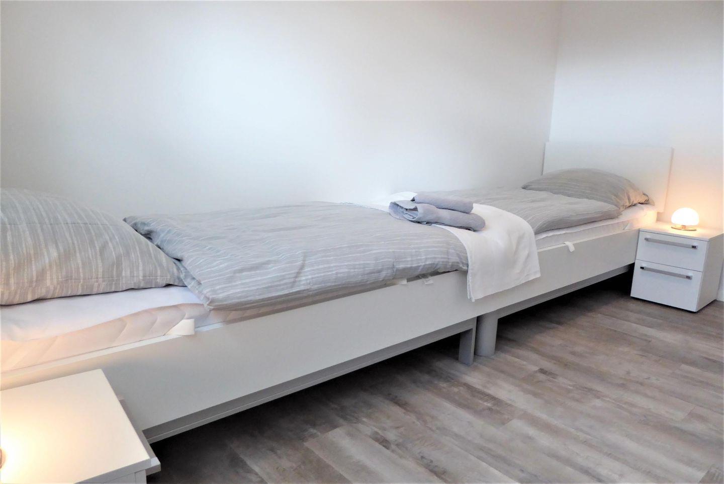 Schlafzimmer 2: 2 x Einzelbett (Maße: 90 x 200 cm), Babybett, Wickelkommode, Nachttische, Leselampen