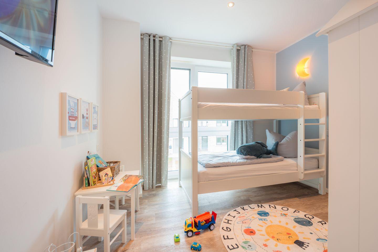 Schlafzimmer 3: Stockbett, Kleiderschrank, Flachbildfernseher