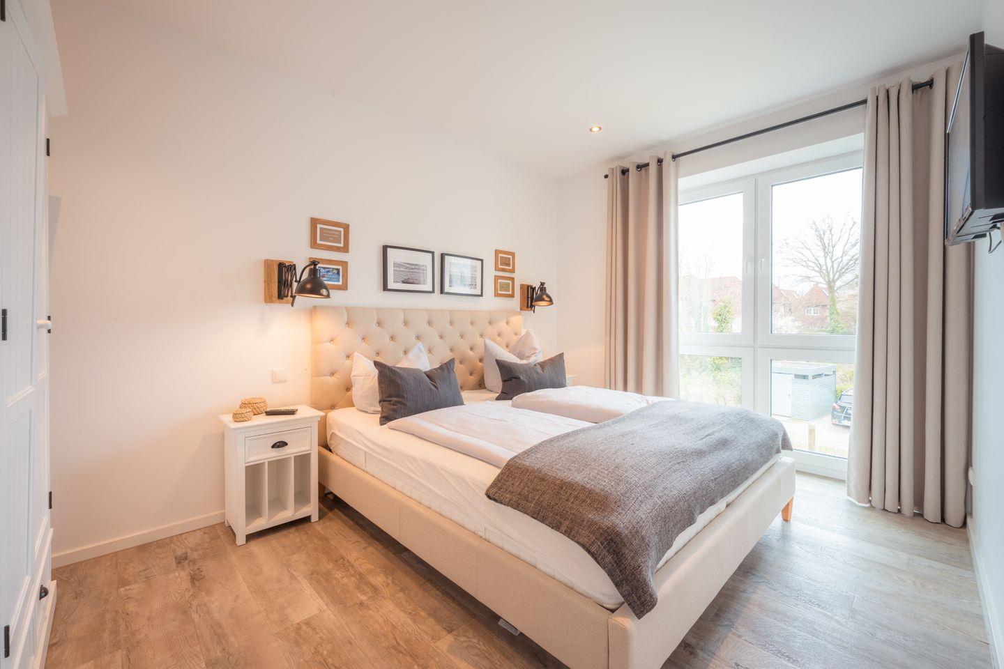Schlafzimmer 1: Doppelbett (Maße: 180 x 200 cm/ 2 Einzelmatratzen 90x200 cm),Nachttische, Kleiderschrank, Flachbildfernseher