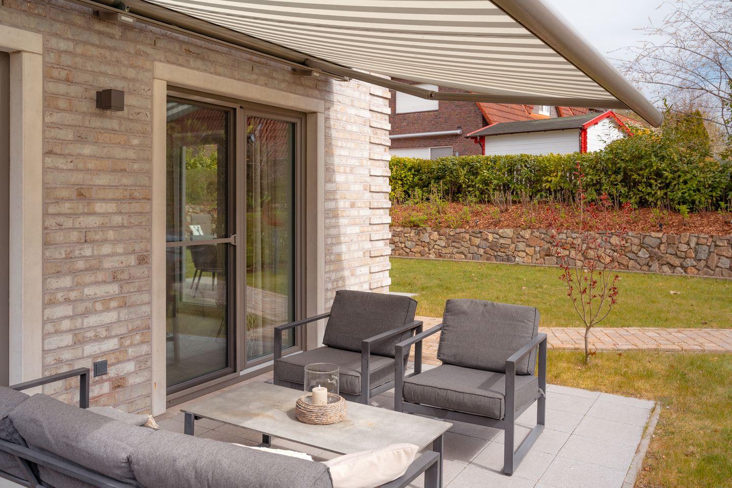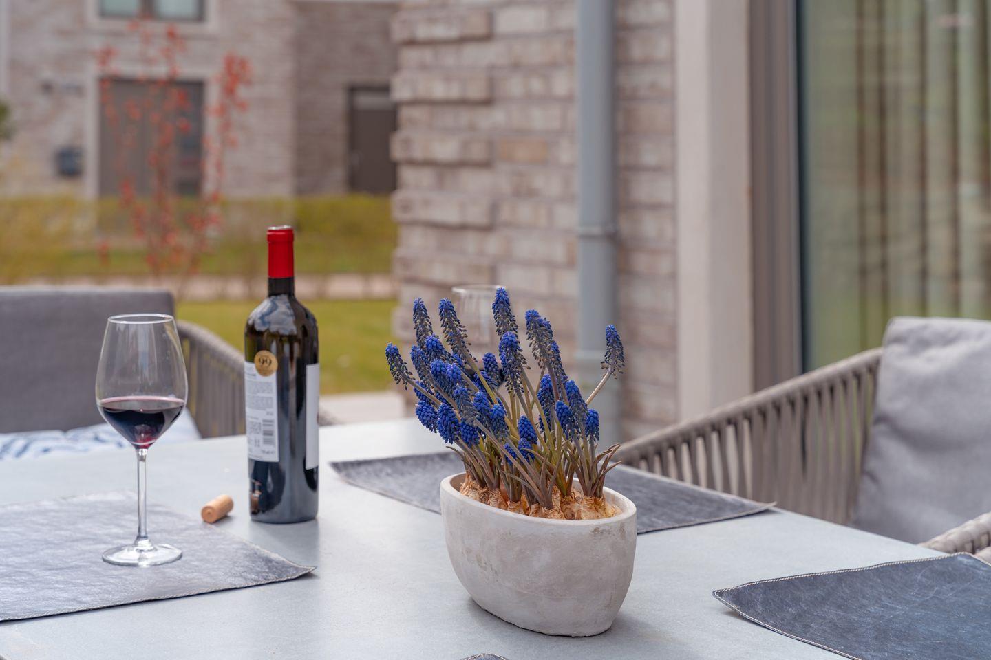 Der extragroße Garten mit 2 Terrassen lädt zum Verweilen ein und bietet ausreichend komfortablen Platz für bis zu 6 Personen an dem Esstisch im Freien.