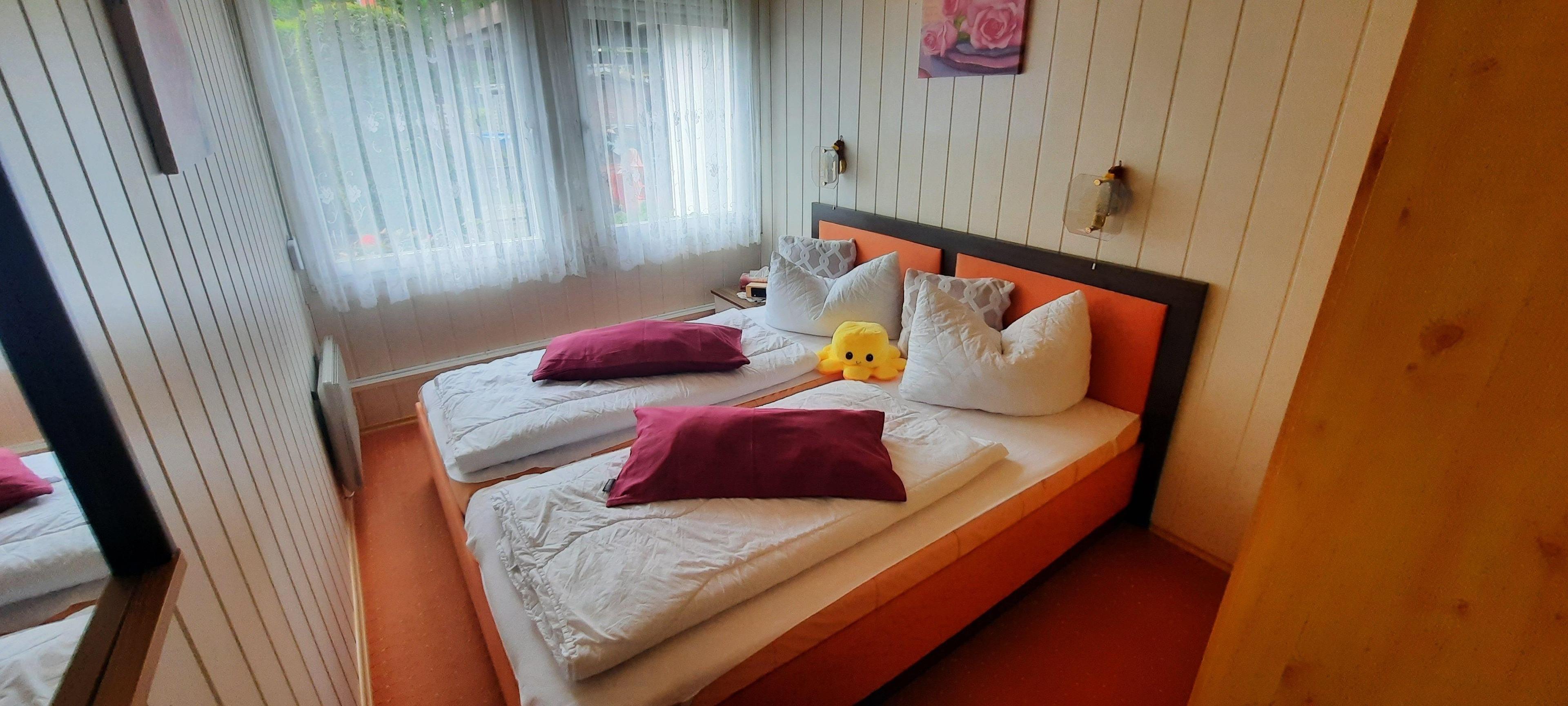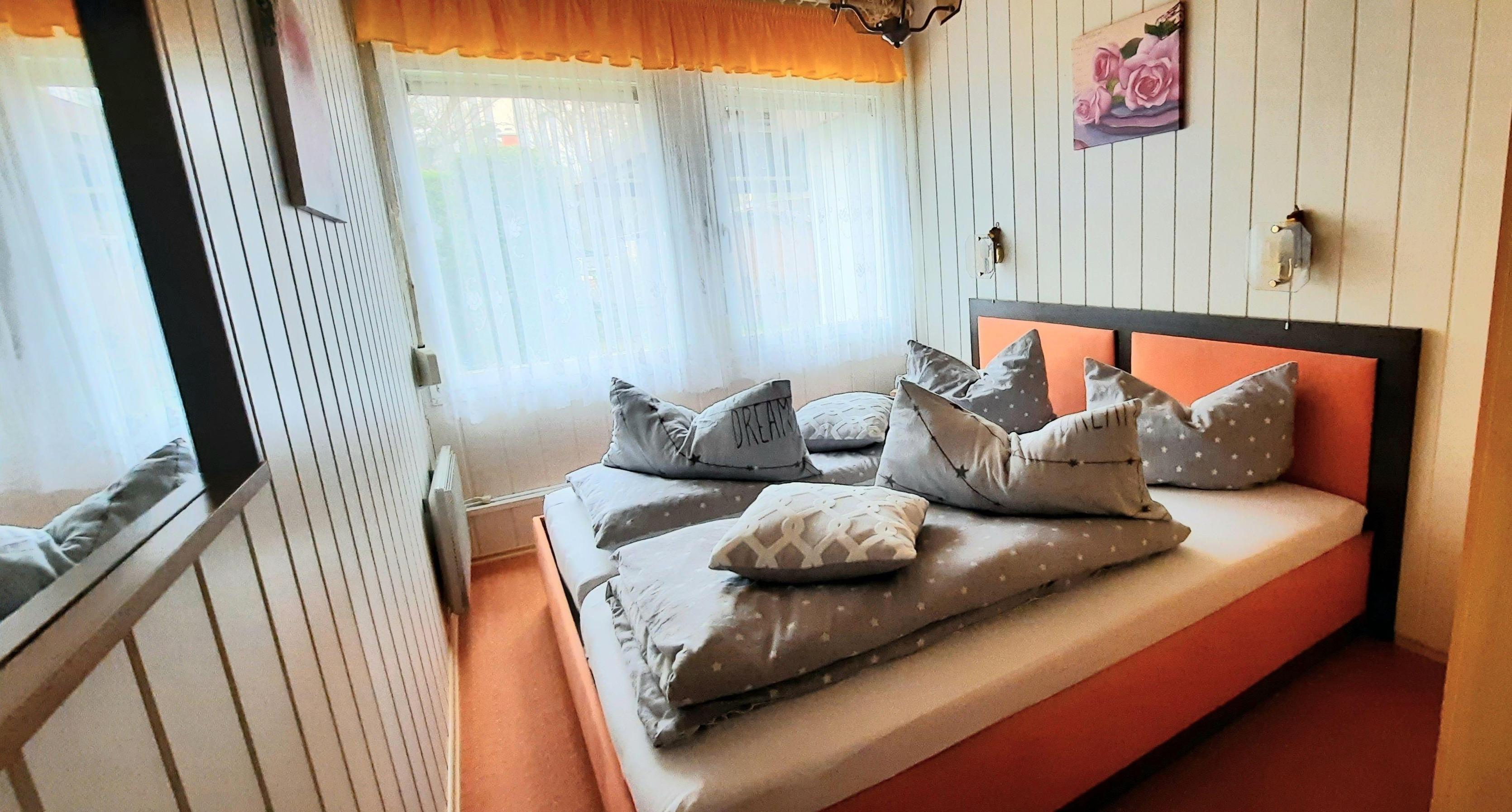 Das Ferienhaus besteht aus einem kleinen Flur mit Garderobe, Wohnzimmer mit Eck Schlafcouch, 2 Hocker, 1 Cocktailsessel sowie TV- mit Receiver, Amazon fire TV stick, Internet/WLAN und einer Infarot Heitzung, Schlafzimmer mit Doppelbett was Kopf / Fuß höhenverstellbar ist, Tageslicht Bad mit Dusche und WC und Küche komplett (ohne Geschirrspüler) ausgestattet mit Kochplattenherd + Backofen, Kühlschrank, Mikrowelle, Kaffeemaschine, Toaster, Wasserkocher und mit einer Sitzecke. Alle Zimmer haben Rollladen. Ein Baby Bett für unsere kleinen Gäste ist vorhanden.