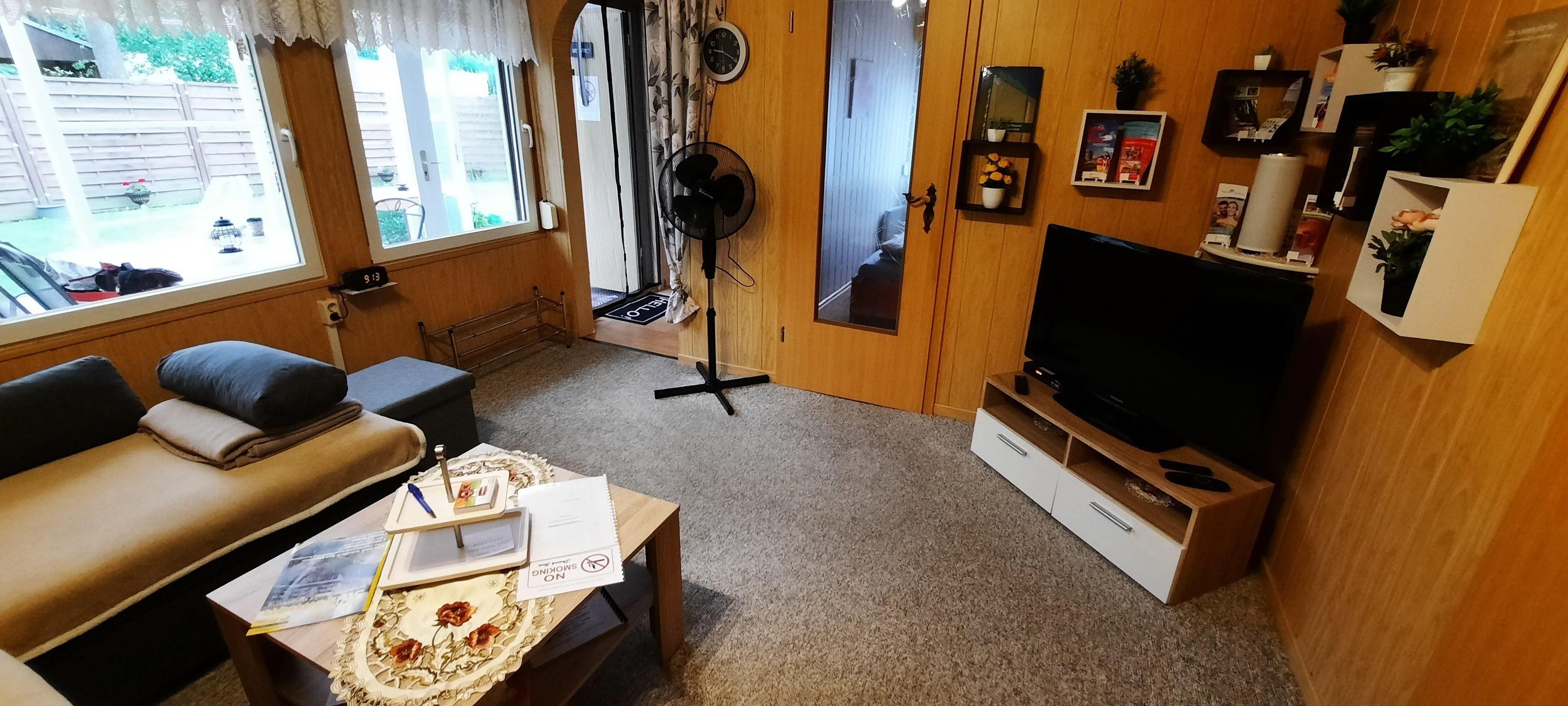Das Ferienhaus hat ca. eine Wohnfläche von 46 m² und besteht aus Flur, Wohnzimmer (mit Schlafsofa), Schlafzimmer, Tageslichtbad mit Dusche und Küche.