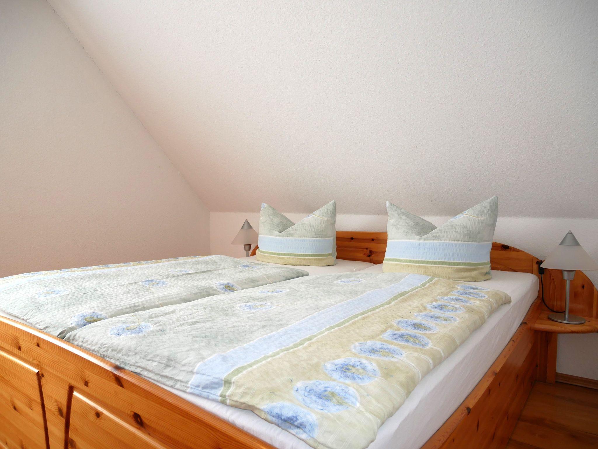 Die Wohnung verfügt über ein Schlafzimmer mit einem komfortablen Doppelbett. Im Schlafzimmer gibt es einen Insektenschutz ? für ruhige Nächte auch im Sommer. Im Wohnzimmer steht ein Schlafsofa zur Verfügung, das bei Bedarf zusätzlichen Schlafplatz bietet. Die Schlaffläche ist 1,20 x 1,85 m.