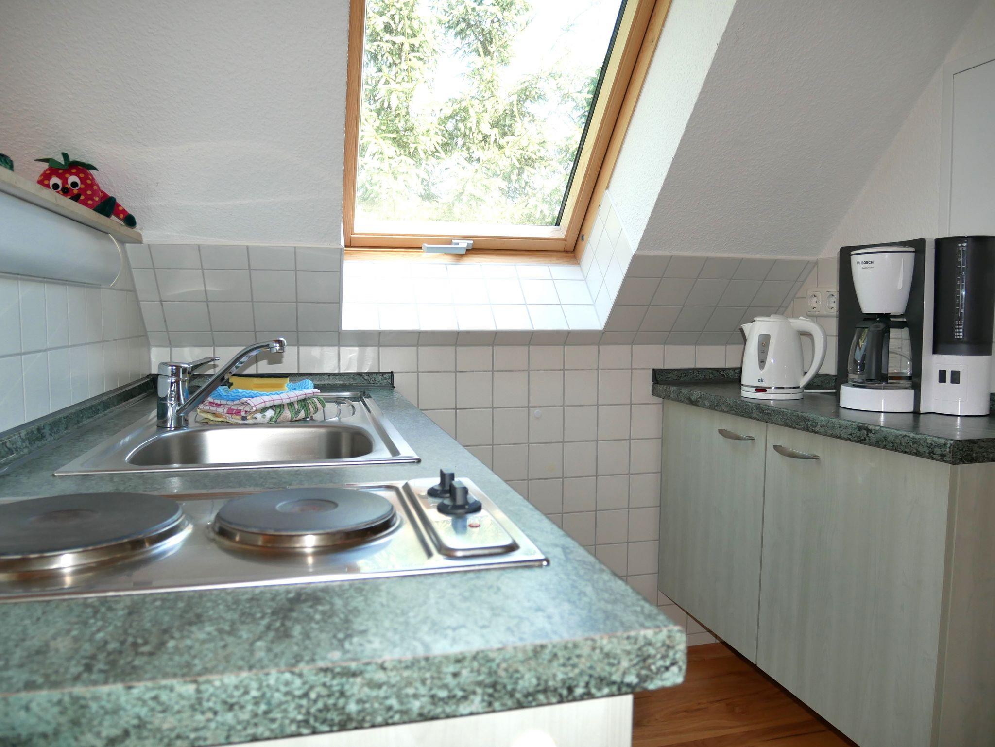 Die offene Küche ist funktional und gut ausgestattet mit einem Kühlschrank mit Gefriermöglichkeit, Toaster, Wasserkocher und Kaffeemaschine ? perfekt für Selbstversorger. Das tageslicht Bad mit ebenerdiger Dusche verfügt über einen Föhn, sowie eine Erstausstattung mit Seife und Toilettenpapier.
