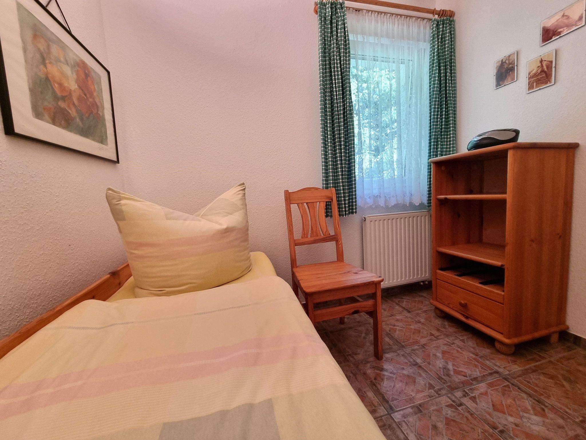Die Wohnung verfügt über eine sonnige Terrasse zur Südseite, die zum Frühstück im Freien oder zum Entspannen am Nachmittag einlädt. Ein Sonnenschirm kann auf Anfrage zur Verfügung gestellt werden. Es erwarten Sie zwei Schlafzimmer: ein Elternschlafzimmer mit einem gemütlichen Doppelbett sowie ein Kinderzimmer mit einem Einzelbett, das sich bei Bedarf ausklappen lässt auf eine Größe von 1,40m x 2,00m. Das Wohnzimmer ist mit einem Schlafsofa ausgestattet und bietet zusätzlichen Raum zum Ausruhen oder Übernachten. Das Schlafsofa hat eine Liegefläche von 1,20 x 1,80m.