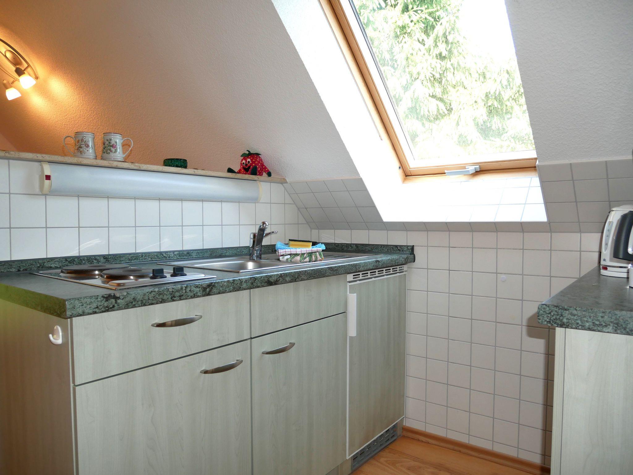 Die offene Küche ist vollständig ausgestattet mit einem Backofen, einem Kühlschrank mit Gefriermöglichkeit, einer Kaffeemaschine, einem Toaster und einem Wasserkocher ? ideal für Selbstversorger. Für die kleinsten Gäste stellen wir auf Anfrage gerne einen Hochstuhl zur Verfügung.
