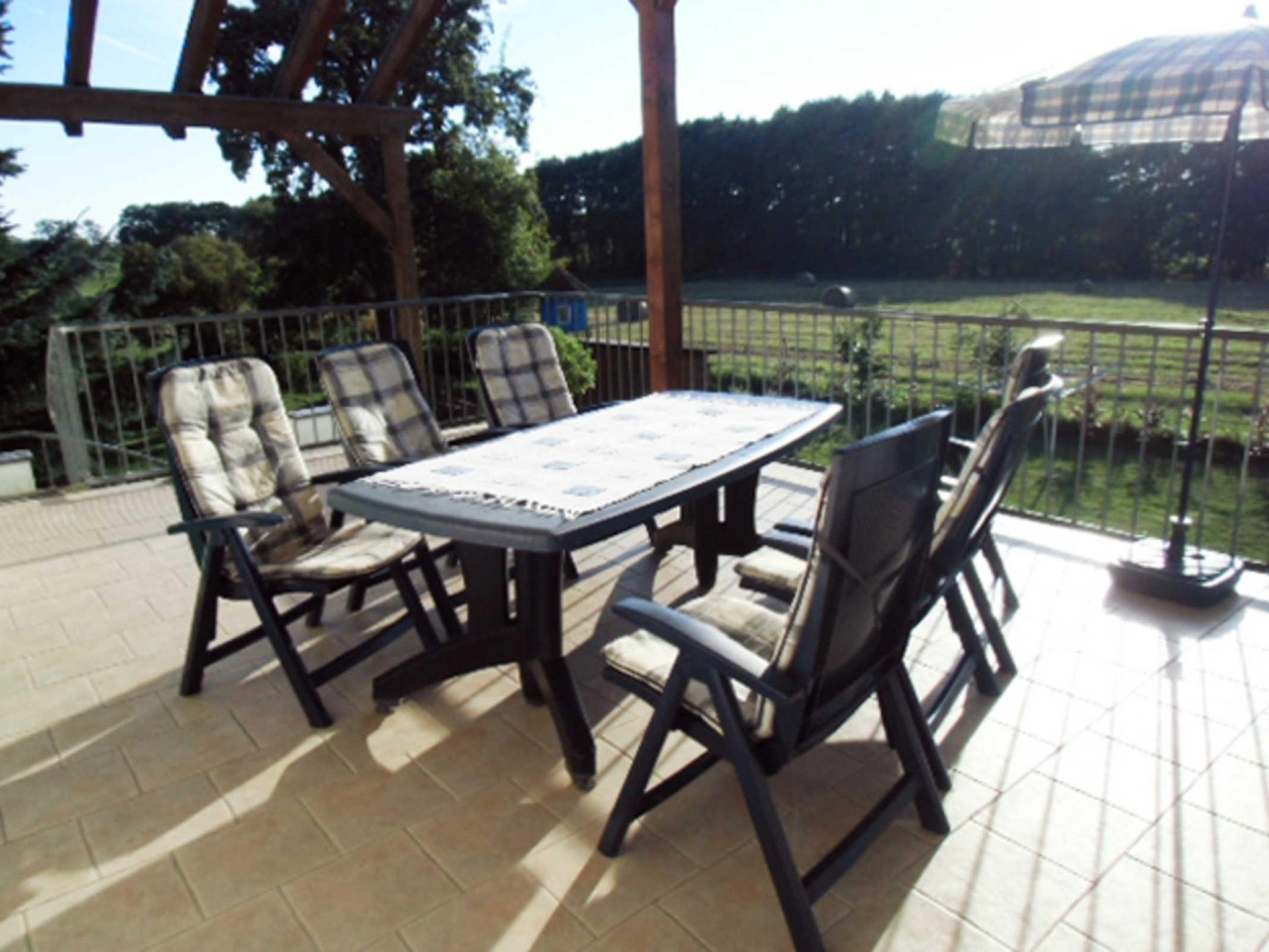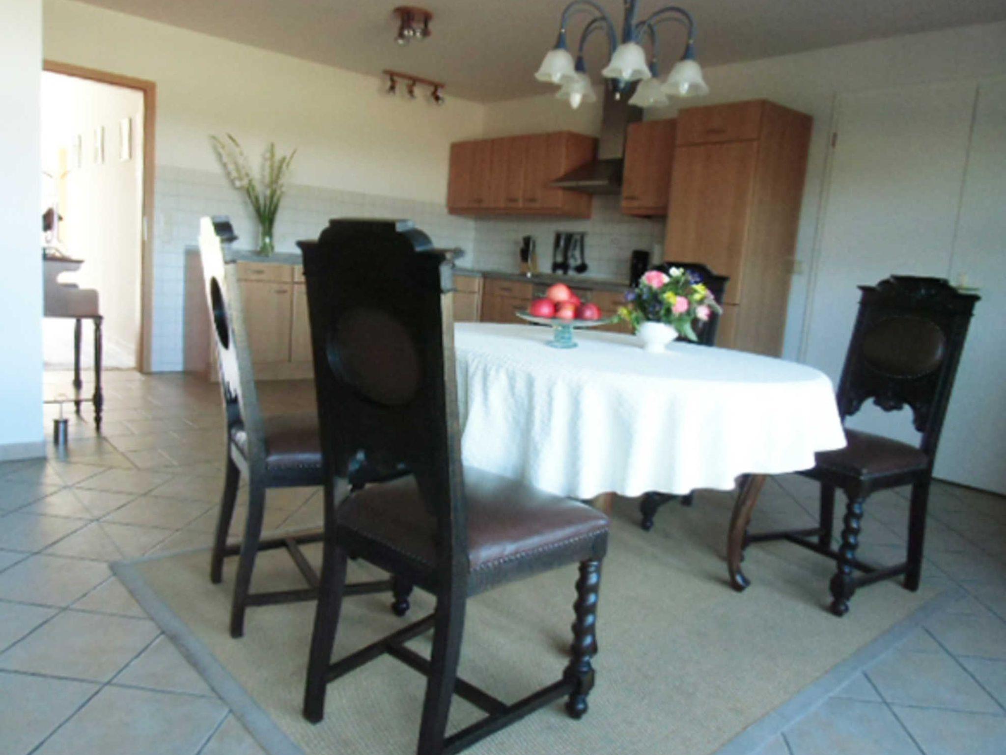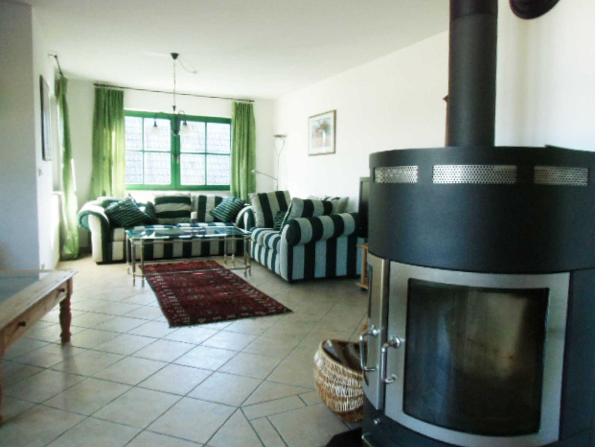 Die Fewo befindet sich im OG in einem Ferienhaus mit insgesamt 3 Fewo. Sie ist ganzjährig zu mieten und für bis zu 6 Personen geeignet. Sie verfügt über eine Wohn/-Küche mit einer Einbauküche (Geschirrspüler), Kamin, einem Schlafzimmer mit Ehebett, einem Schlafzimmer mit 2 Einzelbetten, Dusche/WC (Fön), Gäste WC, einer sonnendurchfluteten Terrasse, TV und Radio. Die Aufbettung für 2 Personen ist im Wohnzimmer möglich. Ein Kinderbett und ein Hochstuhl können auf Anfrage bereitgestellt werden. Eine Waschmaschine und ein Trockner können gegen Gebühr genutzt werden. Sitzecke im Garten und Grillmöglichkeiten vorhanden. Auf dem Grundstück befindet sich ein kostenloser PKW-Stellplatz. Handtücher und Bettwäsche sind nicht im Preis enthalten. Entweder bitte selbst mitbringen oder vor Ort für 8,00 Euro/Person mietbar. Haustiere nach Absprache, pro Haustier 7,00 Euro.