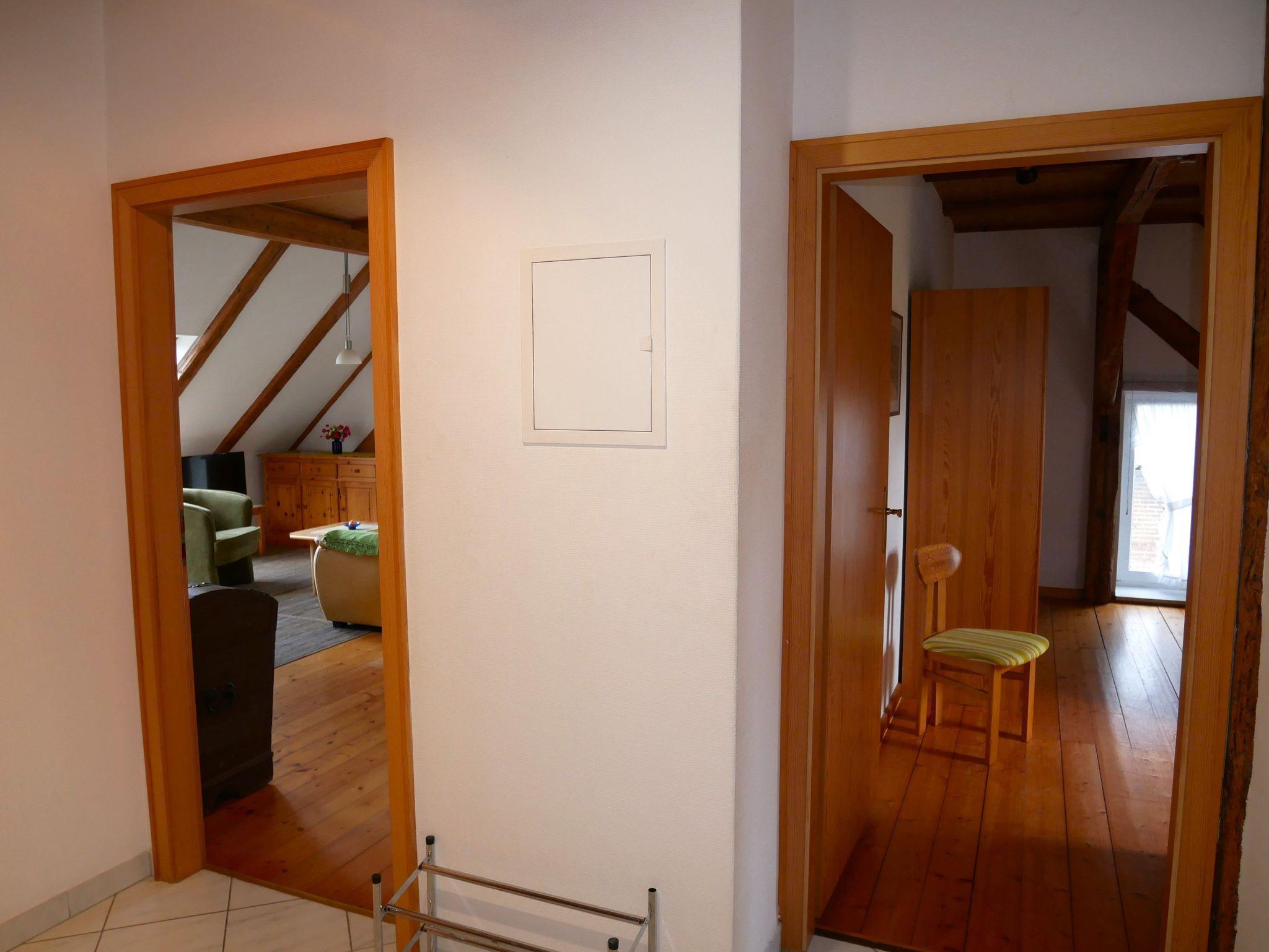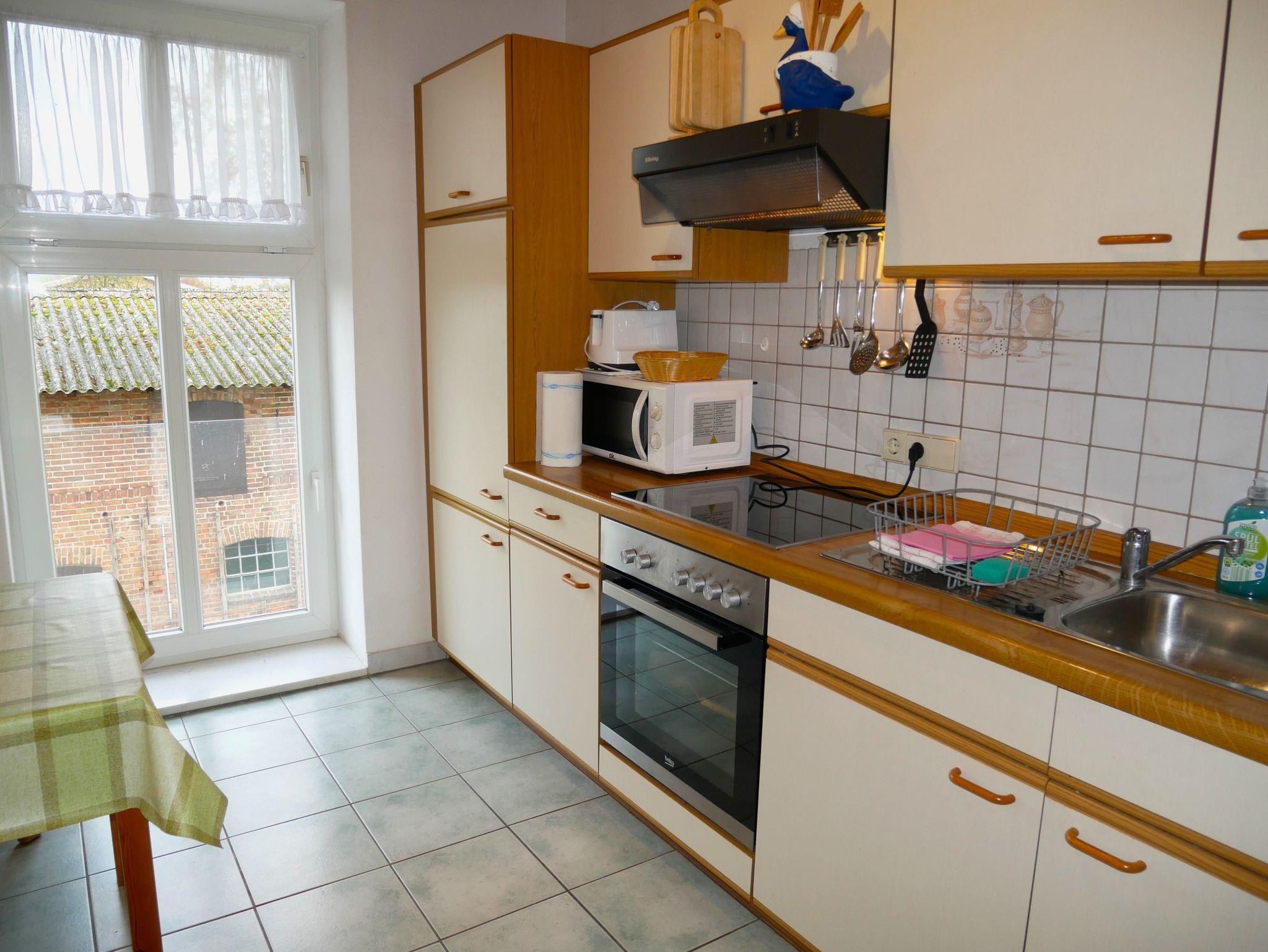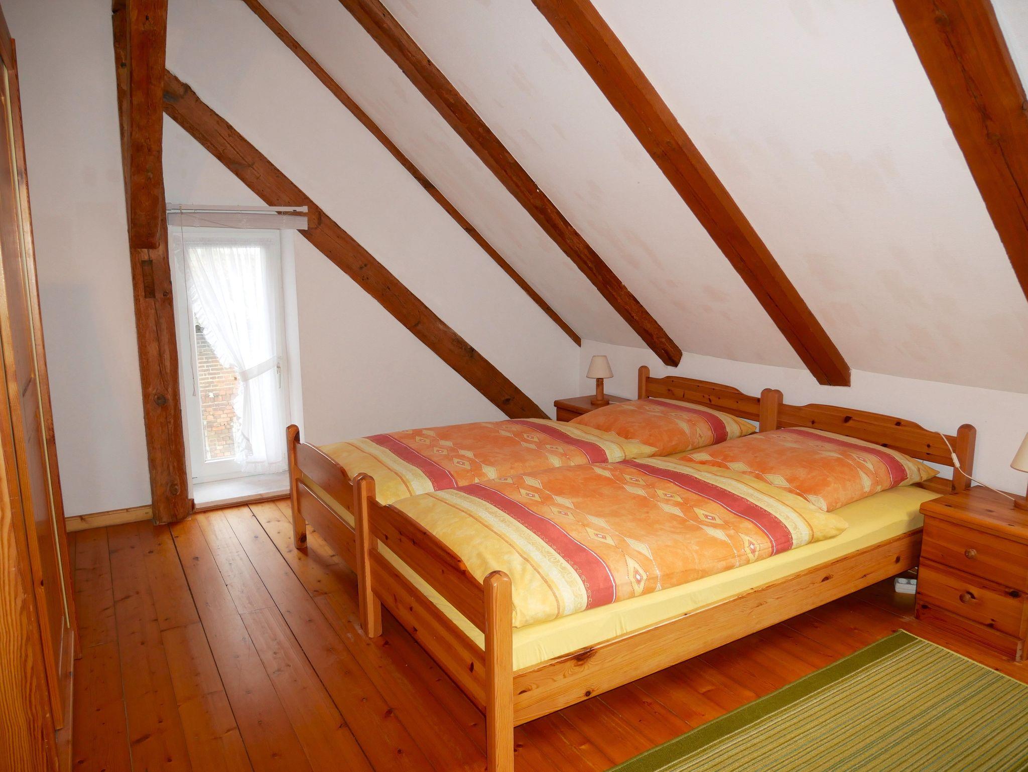 Die 68 qm große komfortable Ferienwohnung befindet sich im 1. Obergeschoss und ist für bis zu 6 Personen (5 Erw. + 1 Kind max. 3 Jahre) geeignet und bietet einen herrlichen Ausblick in unseren Garten sowie in die offene Landschaft mit Feldern, Wiesen, Wald und Oderhaff.