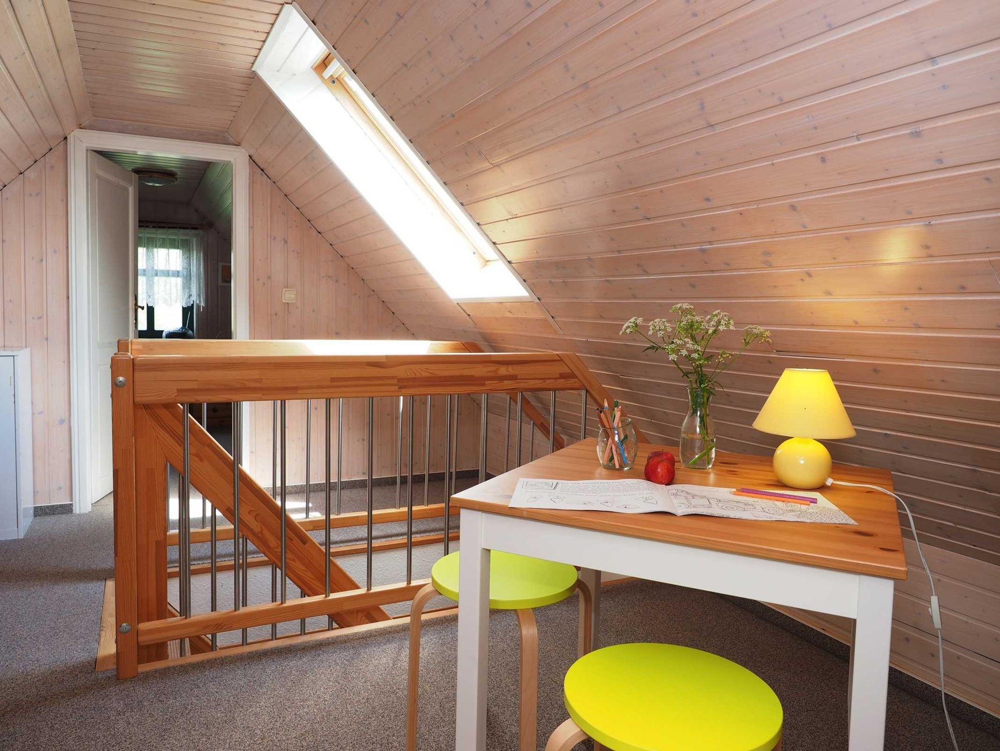 Unsere Ferienwohnung Heuboden liegt im Obergeschoss des Ferienhauses. Von hier aus sieht man hinter den Feldern und Wiesen das Stettiner Haff schimmern. Wir haben die Ferienwohnug liebevoll im Landhausstil mit schönen Holzmöbeln eingerichtet - Licht und Weite: im großen Wohn- und Esszimmer, zwei separaten Schlafzimmern (einmal mit Doppelbett, einmal mit zwei Einzelbetten), kleiner Küche und einem Duschbad. Beim Heuboden liegt das zweite Schlafzimmer im Spitzboden über der Wohnung - ein Spielflur davor gibt den Kindern ein eigenes kleines Reich.