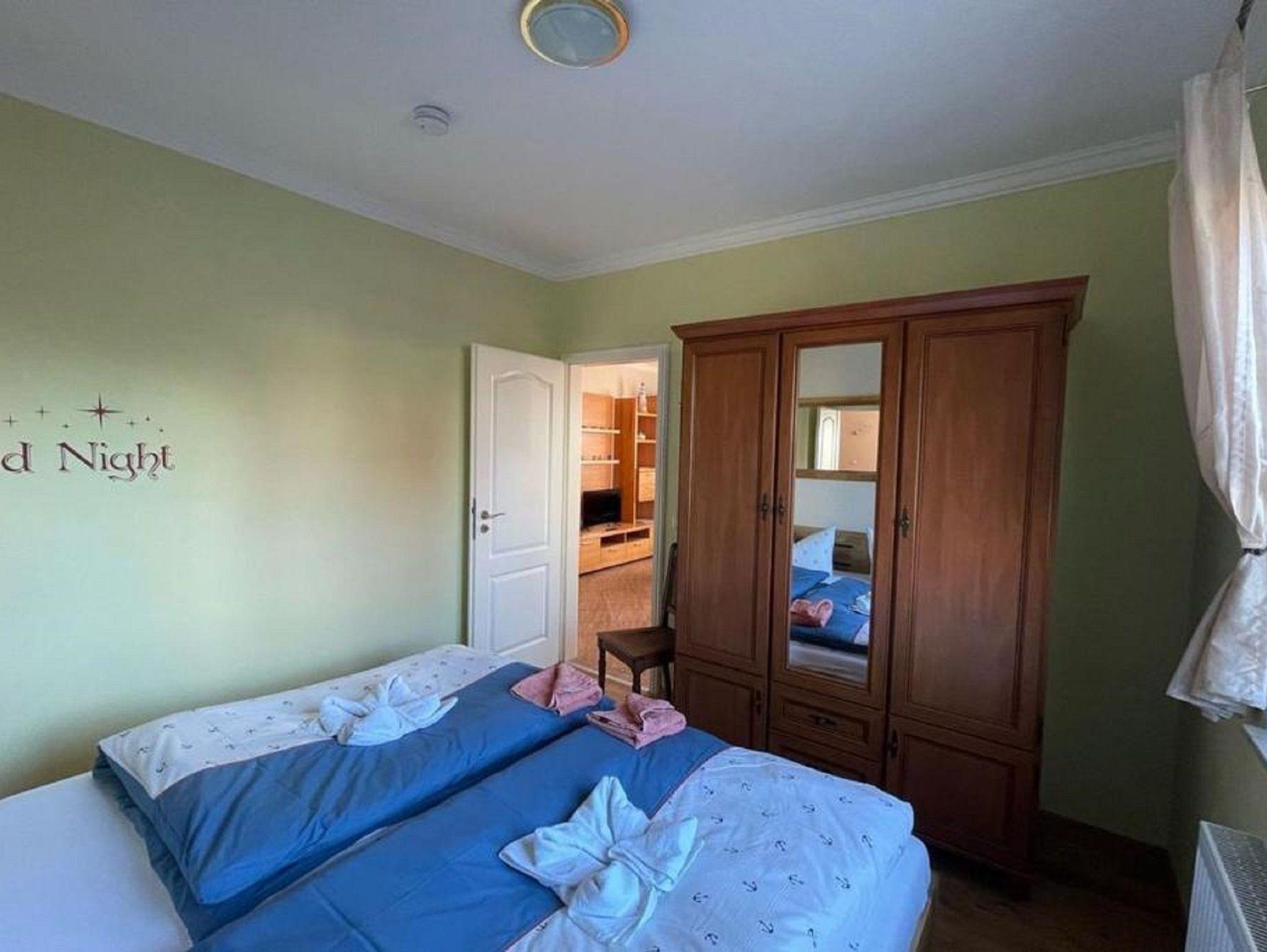 Die Wohnung bietet einen offenen Wohnbereich mit zwei bequemen Schlafcouchen (Aufbettungsmöglichkeit für 3. & 4. Person mit einer Liegefläche von 190x120cm) und einem Flat-TV. Außerdem finden Sie hier eine komplett eingerichtete Küchenzeile mit Kühl-Gefrierkombi, Cerankochfeld, Wasserkocher, Kaffeemaschine, Toaster und Mikrowelle mit Grillfunktion sowie einen Esstisch mit Stühlen für bis zu 4 Personen. Es sind maximal 4 Haustiere gegen einen Aufpreis willkommen.