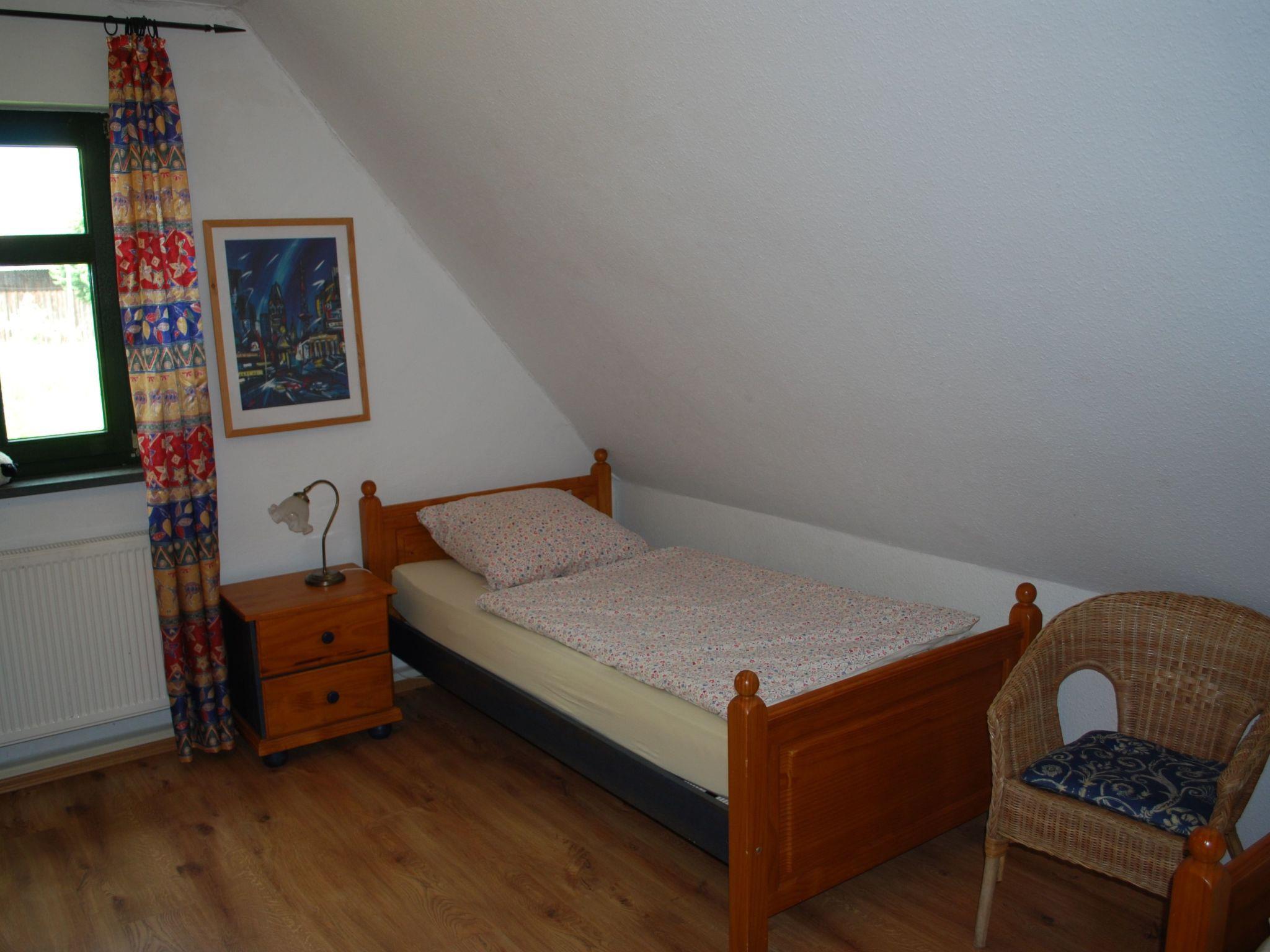 The small holiday resort is located approx. 3 km from Dargun. It is the ideal place for nature lovers. The property is located on the outskirts of the village in a sunny, quiet and elevated position approx. 4 km from the bathing lake.6-7 person guest flat on the upper floor, living room with kitchen (dishwasher), bathroom with shower and WC, 1 bedroom with double bed (extra bed possible), 2 bedrooms with 2 single beds each.