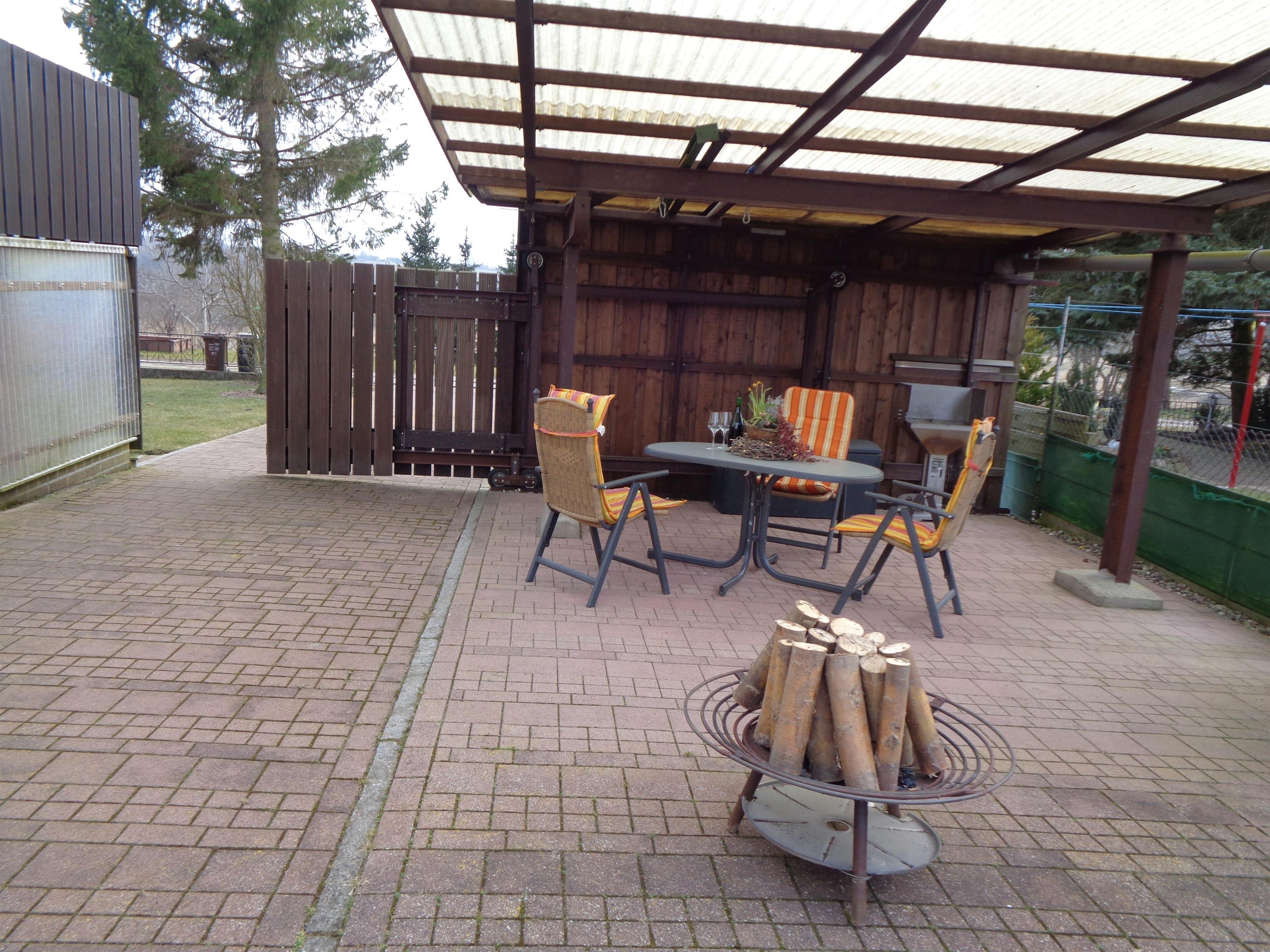 Im Garten gibt es eine gemütliche Sitzecke mit Grillplatz und einen Spielplatz für Kinder
