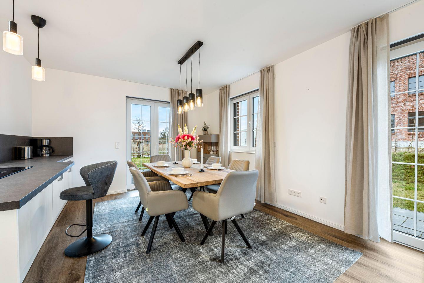 Der offene Zugang zur modernen Küche ermöglicht es Ihnen, Ihre Lieblingsgerichte selbst zuzubereiten.