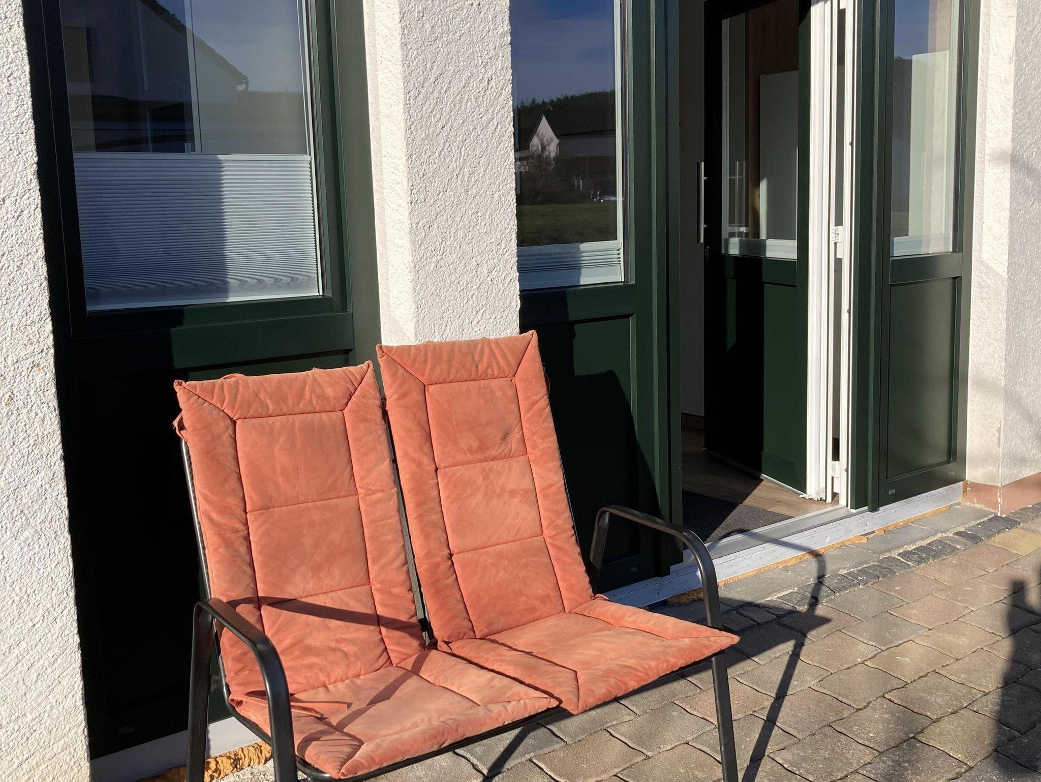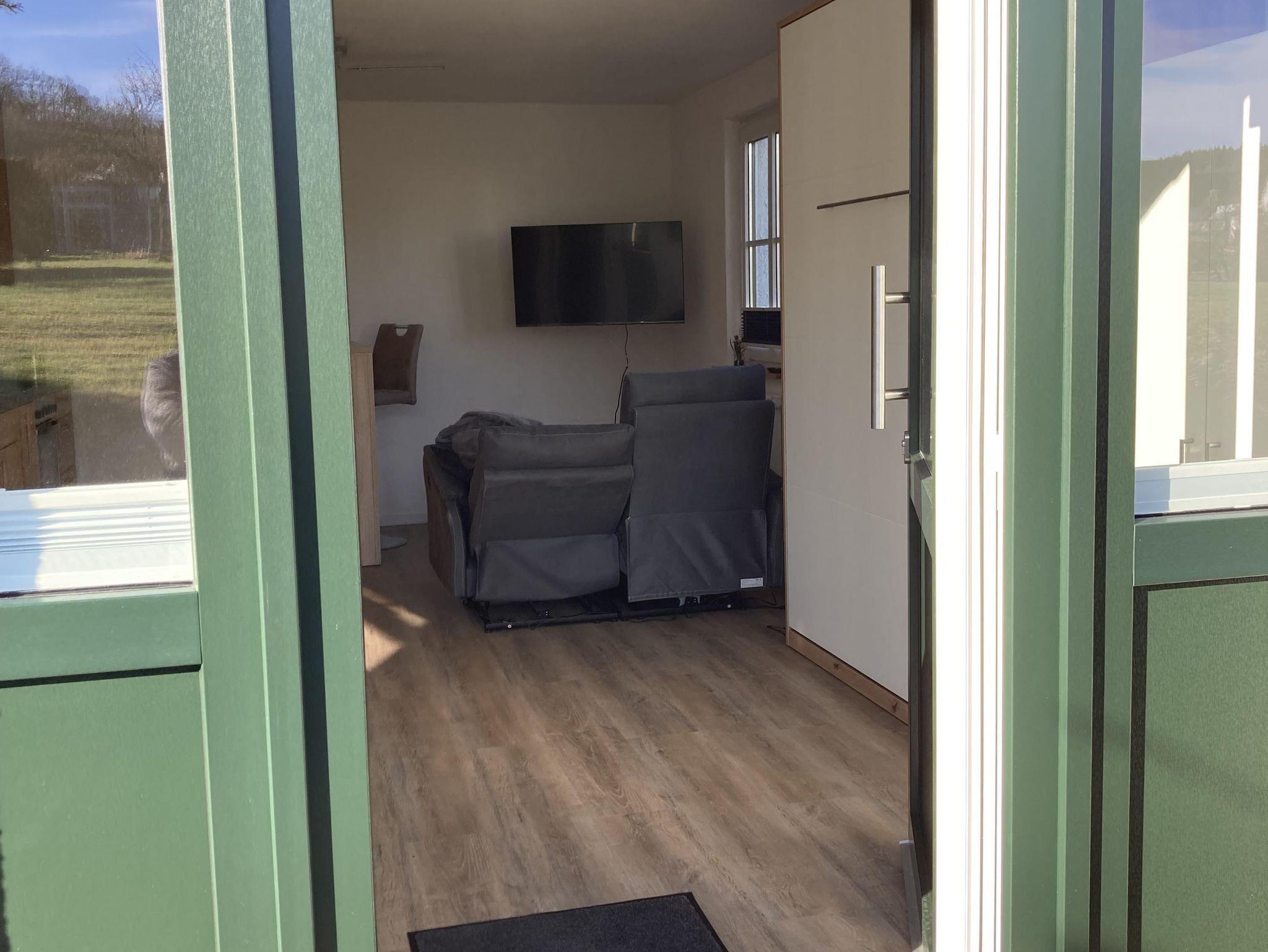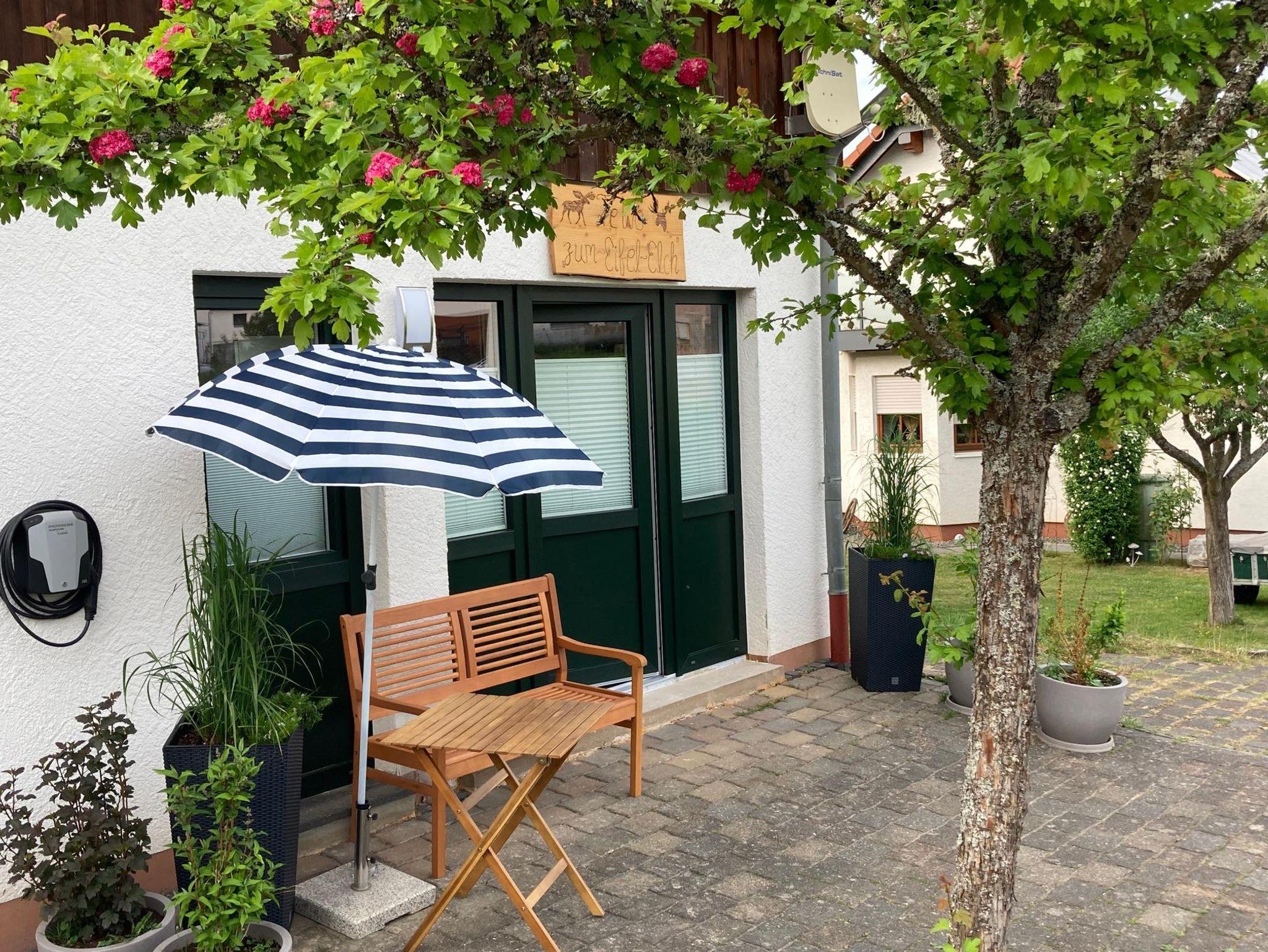 Neues, helles, 28 qm großes Apartment inklusive separatem Bad mit Dusche. Eigener, ebenerdiger Eingang, voll eingerichtete Küchenzeile, Thekentisch mit zwei höhenverstellbaren Hockern, Flachbild-TV, Funktionscouch, gratis WLAN, neues, hochwertiges Schrankbett (160x200) mit Leseleuchten und USB. Ruhige Lage, Sitzmöglichkeiten draußen, Grillstelle mit offenem Feuer, abschließbare Fahrradstellplätze, Unterstellmöglichkeiten für Motorräder, Pkw-Parkplatz mit Wallbox. Top Lage (Wildpark 1,5 km, Rad- und Wanderwege 100 m, Supermarkt und Bäckerei 300 m, City 2 km, Maar 3 Km). Nichtraucherapartment. Keine Haustiere.
