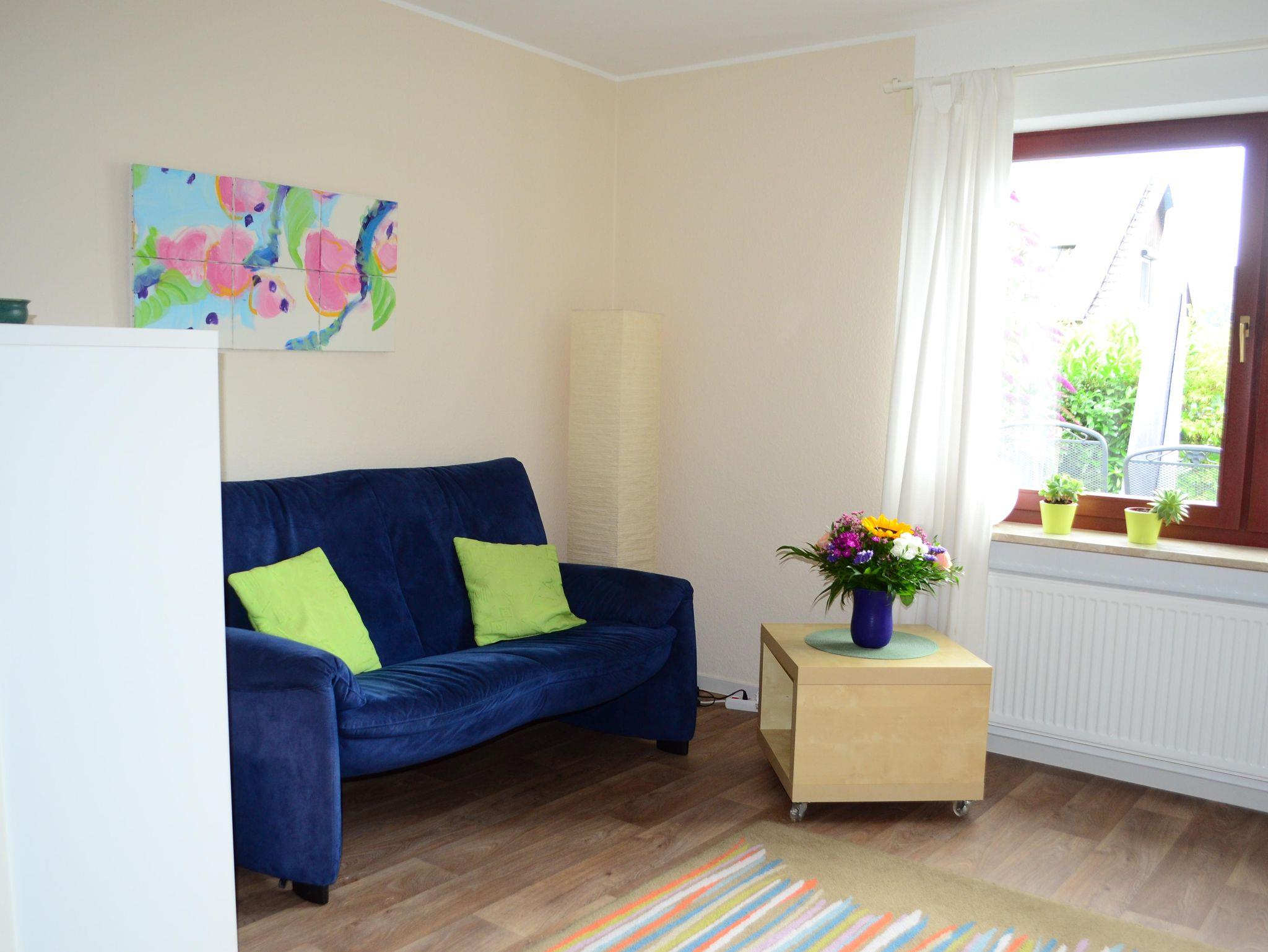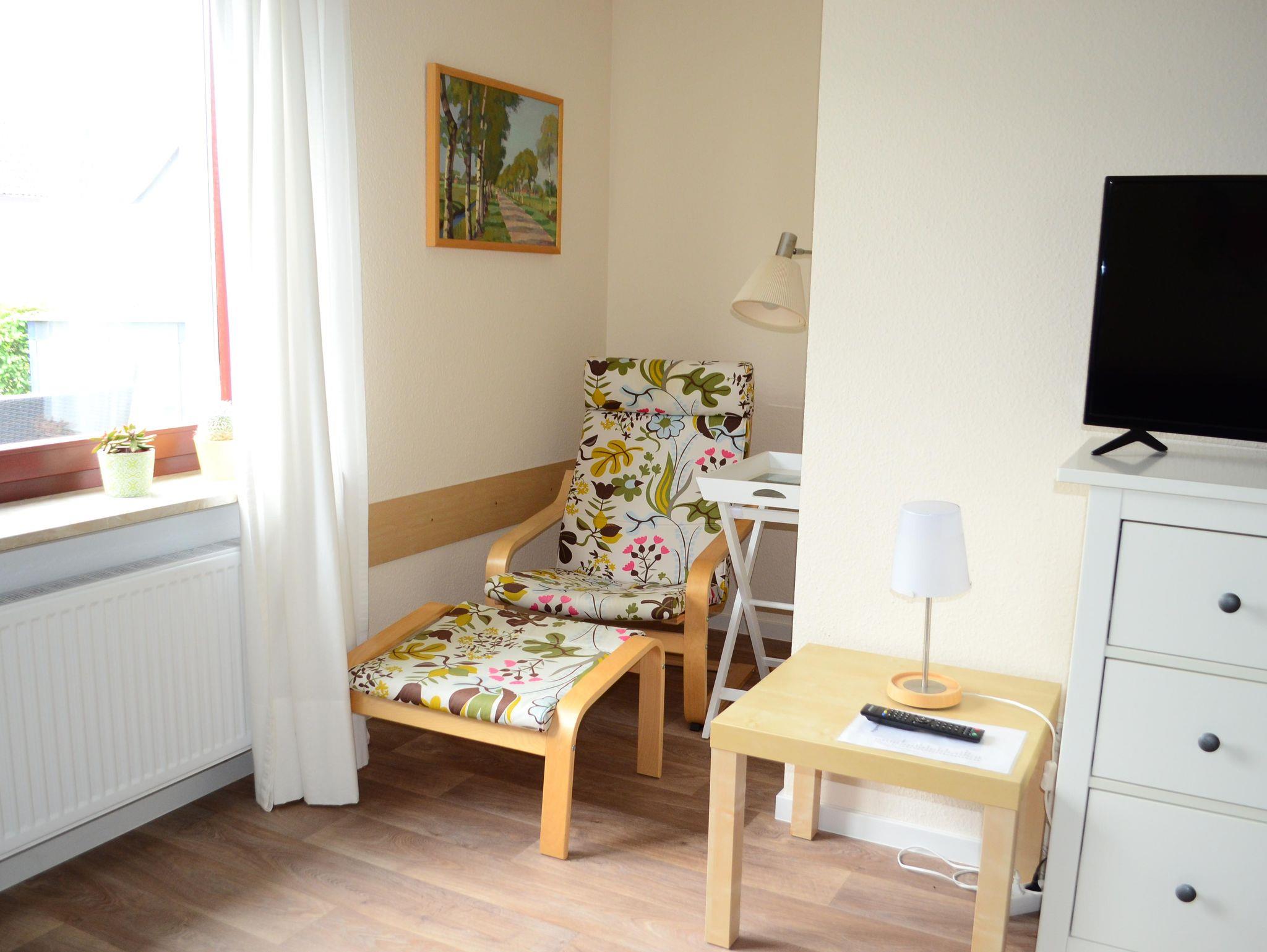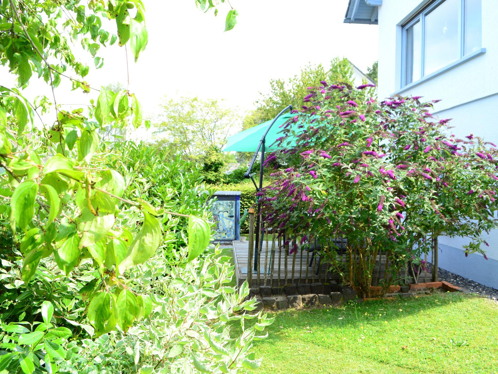Sehr ruhig gelegene Ferienwohnung am Waldrand, nur Anliegerverkehr. Neu und hell eingerichtet mit separatem Eingang. Gemütliche Leseecke im Wohnbereich inkl. Bibliothek, Hörbücher,Flachbildfernseher, DAB/Bluetooth/CD-Anlage, usw. Eigene Terrasse mit Gartenmöbeln, Liegestühlen mit Auflagen, großer Sonnenschirm. Komplett eingerichtete Einbauküche mit Ceranfeld, Backofen, Kühl- und Gefrierfach, Geschirrspüler, Mikrowelle, Kaffeemaschine, usw.