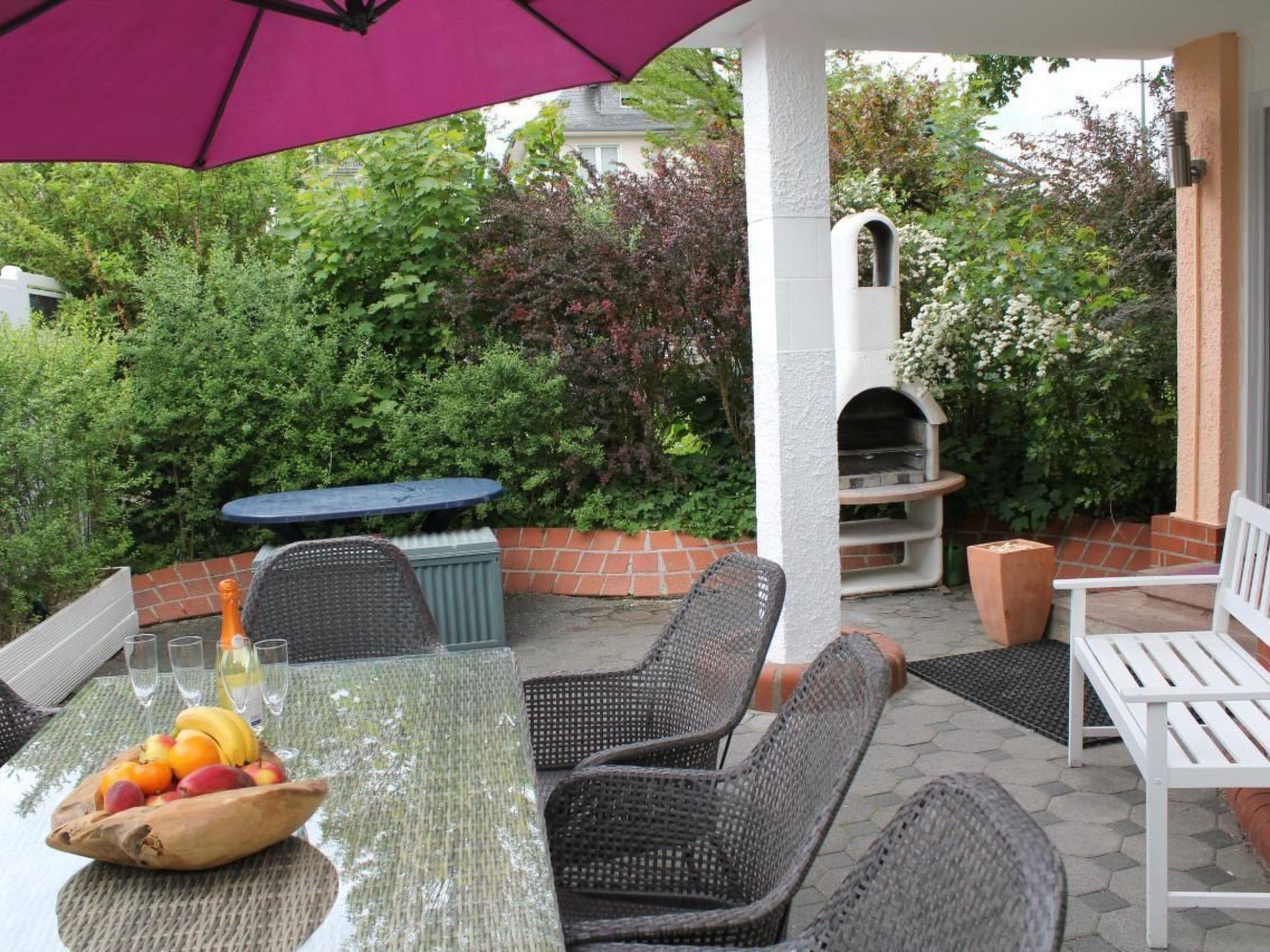 Vulkaneife holiday apartmentThe Vulkaneifel holiday flat is bright and modernly furnished. It is located in the centre of the beautiful holiday resort, the small town of Daun, and the outdoor area of the house includes an approx. 45 m² terrace with garden furniture and a barbecue. The terrace borders the busy street to the front and a small park to the side. Due to the central location of the house (road traffic), the terrace is enclosed by a fence and hedges. The separate entrance to the house leads into the house from the street via the terrace. New: Sauna in the basement (for exclusive use, free of charge)! Behind the house there is also a well-kept and quiet garden with lawn, additional seating area, 2nd barbecue, fountain and children's play tower with 2 swings, sandpit and slide. This outdoor area can also be used. The outdoor area has been lovingly and lavishly furnished with an ornamental gravel area and a small waterfall with fountain, and a special atmosphere is created in the evening with the colour-coordinated LED lighting of the house and the outdoor facilities. the Vulkaneifel holiday flat is approx. 90 sqm in size and extends over 2 floors in the Vulkaneifel City Holiday Home. on the ground floor there is a kitchen-living room and 2 separate bedrooms. In the basement there are 2 bathrooms and a toilet and the flat is suitable for 2 to 6 persons. In the living room there is also a double sofa bed with 2 additional beds. The holiday flat has a kitchen-cum-living room, dishwasher, electric cooker with 4-plate ceramic hob and oven, large fridge with fridge-freezer combination. 2 coffee machines (1 x pod, Bosch Tassimo and 1 x filter machine). The dining area is located in the living area. Decorative electric fireplace in the living area.Internet with WLAN / Wireless is available (free of charge). In the living room: HD TV (107 cm), digital TV with many German and international channels (2 satellites: Astra and Hotbird), digital radio, DVD player, radio, CD player (can also be used with USB stick), ceiling fan, games etc. Wardrobe. In the basement there are 2 bathrooms, 1 x bathtub and sep. shower, washing facilities, WC and 1 x shower, washing facilities. Both bathrooms have a large illuminated LED mirror with time and date display and a large full-length mirror and a hotel hairdryer, 2 modern countertop washbasins with LED-lit fittings. In addition, a music system with CD/radio and USB connection is installed in each bathroom. New: Sauna in the basement (for exclusive use, free of charge)! Microwave, coffee machine, toaster and kettle. Pots and pans as well as cutlery and crockery for the maximum possible number of people are of course available. A cot and high chair can be provided free of charge and there is a washing machine and tumble dryer in the basement of the house. The appliances can be used for a small fee (including detergent).the holiday flat has parking spaces behind the house.many sights and leisure facilities are only a few minutes' walk away. Shopping, restaurants, cafes, cinema, wellness or indoor hot water pool etc. are just around the corner. A large supermarket and 3 bakeries (also with Sunday sales) are only about 100 to 150 metres away and the 3 lakes are only 2 to 3 km away. Visit the beautiful spa gardens in Daun.the hiking area Wehrbüsch with connection to the Maaren is only about 600 to 700 m away.a large children's playground is only 100 m away.short descriptionOther : Non smoking houseShort description 1Number of kitchens : 1SurroundingsLeisure facilities : Boat hireSports facilities in the area : FishingGarden and outdoor facilitiesRecreational facilities at the property : SaunaGarden equipment : Barbecue