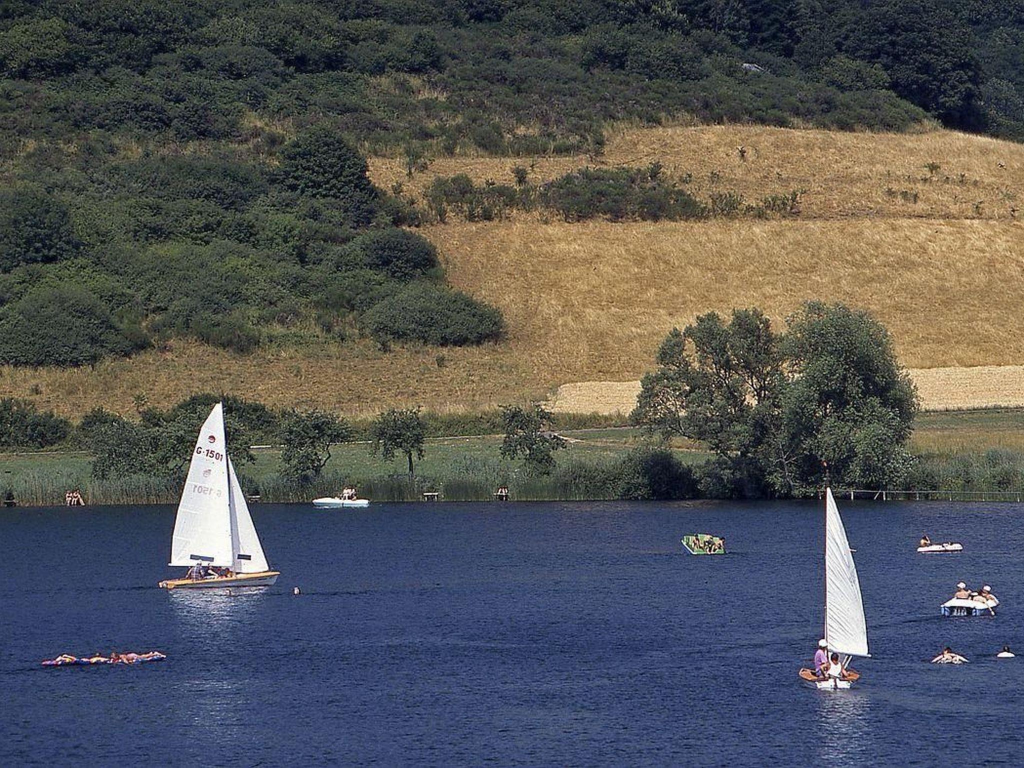 Many sights and leisure facilities are only a few minutes' walk away. Shopping, shopping, restaurants, cafes, cinema, wellness or indoor hot water pool etc. are just around the corner. A supermarket and 2 large bakeries are about 50 to 150 metres away (bakeries and cafes, open on Sundays). The 3 lakes are only 2 to 3 km away. Visit the beautiful spa gardens in Daun. The hiking area Wehrbüsch with connection to the Maaren is only 600 to 700 metres away. A large children's playground is only 100 metres away. Daun: The small, cosy district town of Daun (approx. 7,500 inhabitants) is situated at an altitude of approx. 400 to 500 metres. Daun is considered the centre of the Vulkaneifel. Idyllically situated, the holiday resort of Daun is an excellent starting point for the many excursion destinations. You will find many leisure facilities and sights in Daun and the surrounding area. The 3 Daun lakes (Maaren) are only 2 to 4 kilometres away. You can enjoy swimming, boating, fishing and many other water sports here. The Daun Wildlife and Adventure Park and the associated summer toboggan run are just 2 kilometres away. The world-famous Nürburgring race track is only about 18 km away. One of the most beautiful cycle paths in Germany, the Maare - Mosel cycle path (former railway line to the Mosel), starts and ends in Daun. Bicycles can also be hired cheaply in Daun. In the well-known tourist town of Daun, the volcano museum, the indoor swimming pool, many small shops and good guesthouses invite you to visit. Leisure activities and excursion destinations The Volcanic Eifel is particularly famous for its many maars (crater lakes). The 3 "Dauner Maare" are located directly in the village (Schalkenmehrener Maar) or approx. 2 to 3 kilometres away (Weinfelder and Gemündener Maar). The maars are known as the "eyes of the Eifel". Some of them are bathing lakes with very good water sports facilities and boat hire (e.g. Schalkenmehrener Maar, Gemündener or Pulvermaar), but they are also very well-known nature conservation and hiking areas. The Moselle is not far away. We recommend a trip to Cochem, Traben-Trarbach, Bernkastel or Trier, the oldest city in Germany. The neighbouring countries of Luxembourg, Belgium and France are also well worth a visit. The world-famous Nürburgring with its wide range of events and leisure facilities is very popular with visitors. Or visit one of the countless castles and palaces in the region. Other excursion destinations: Various animal parks, observatory, bell foundry, beekeeping, volcano museum in Daun, Maar museum in Manderscheid, volcano house and volcano adventure trail in Strohn, geo-route, geological excursions, adventure park, visit to the Eifel Nature Park, etc. The Eifel is also very well known for its artists and writers. The successful Eifel crime novels are particularly popular. The Eifel crime thriller festival "Tatort Eifel" attracts many visitors to Daun and the region time and again. Cyclists get their money's worth in the Vulkaneifel. A former railway line has been converted into one of the most popular cycle paths in Germany: The Maare-Mosel cycle path leads from Daun to the Moselle. The return journey can also be made by bus (with bike trailer). The Kosmos cycle path from Daun to Meerfeld is new and also very popular. There are also some of the most beautiful mountain bike trails in Germany in the Volcanic Eifel. The Volcanic Eifel is a true hiking paradise. Two well-known hiking trails are the Lieserpfad and the Eifelsteig. Further tips for your leisure time: Summer toboggan run, balloon rides, hang gliding and ultra-light flights, sightseeing flights with gliders or sports planes, paragliding, thermal, adventure, indoor or heated outdoor pools, wellness oases, surfing, mini golf, golf, Nordic walking, fishing, bowling, bowling, squash, tennis, badminton, archery, climbing rocks, fitness centres, racing and rally sports, karting, horse riding, horse riding, cinema centre in Daun, steam locomotive and train rides, boat trips on the Moselle, wine tasting on the Moselle, visiting monasteries and Roman sites, covered wagon rides, amusement parks and children's leisure parks nearby, fossil hunting, exploring caves and ice caves, visiting waterfalls and much more.and much more. In winter: Cross-country skiing, alpine skiing (ski lifts partly with snow-making facilities), tobogganing or ice skating