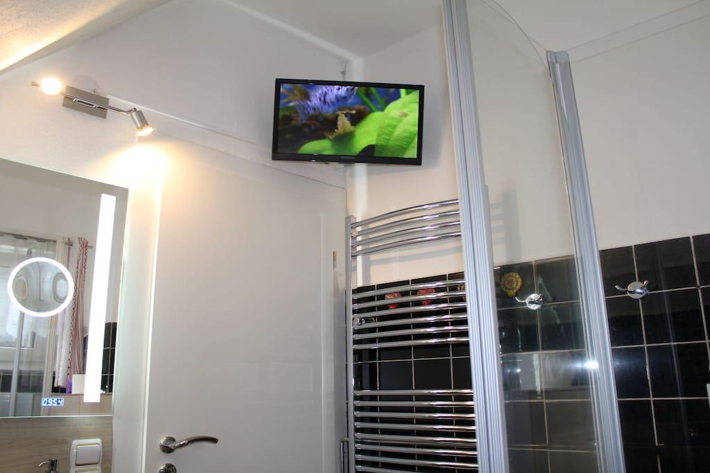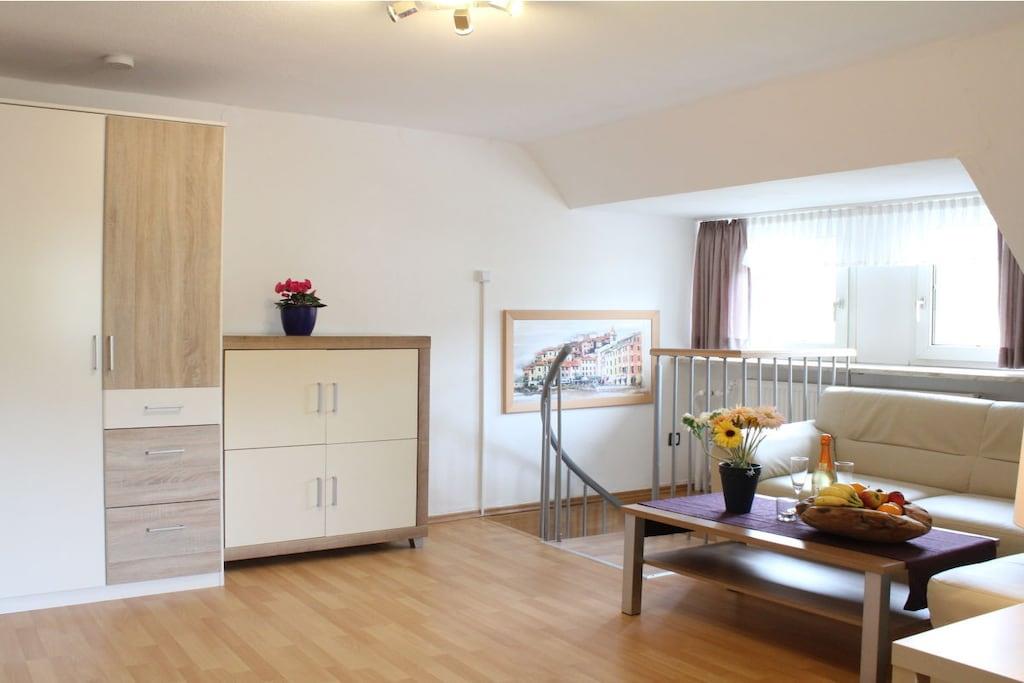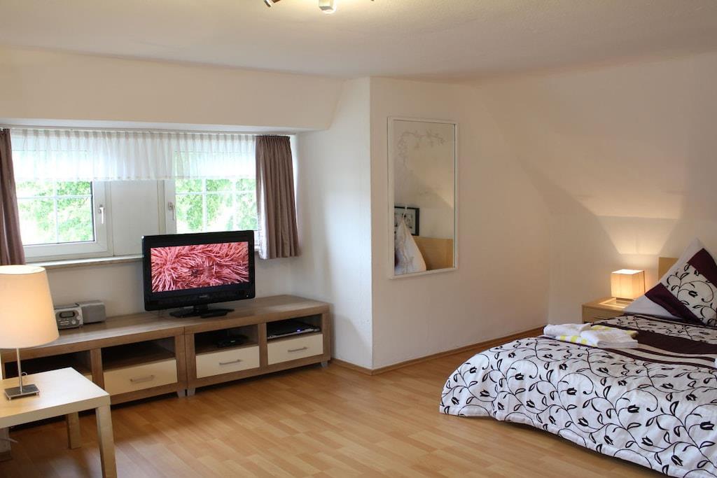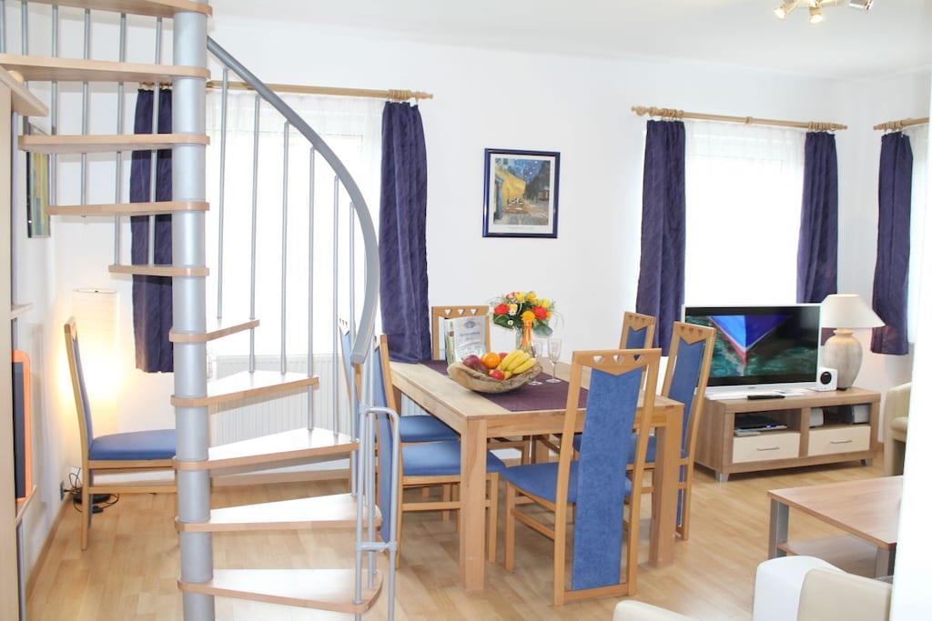 Das große Ferienhaus liegt im Zentrum der schönen Kleinstadt und des Ferienortes Daun, in unmittelbarer Nähe zu vielen Sehenswürdigkeiten und Ausflugszielen. Alle Informationen auch auf unserer Website www.villa1.de Das City Ferienhaus Vulkaneifel ist eine Kombination der beiden Ferienwohnungen "Daun" und "Vulkaneifel". Es kann daher als komplettes Haus mit 185 qm Wohnfläche und Außenterasse gebucht werden. Zum Außenbereich des Hauses gehört eine ca. 45 qm große Terrasse mit Gartenmöbeln. Die Terrasse grenzt zur Vorderseite an die belebte Straße und den Gehweg und seitlich an eine kleine städtische Parkanlage. Aufgrund der zentralen Lage des Hauses wurde die Terrasse mit einem Zaun und Hecken umfriedet. Der separate Eingang des Hauses führt von der Straße über die Terrasse ins Haus. Internet - WIFI - WLAN: Vorhanden und kostenfrei nutzbar! Am Außenbereich des Hauses ist liebevoll und aufwendig eine Zierkiesbereich angelegt worden. Mit Springbrunnen und einem kleinem Wasserfall. Das Haus und die Außenanlagen sind am Abend und nachts sehr attraktiv in einem Farbenspiel mit LED Strahlern angestrahlt. Das Ferienhaus erstreckt sich über 4 Etagen und bietet bis zu 12 Personen Platz. Es verfügt über 5 sep. Doppelschlafzimmer, davon ein kleines Zusatzapartment über eine Wendeltreppe ins Obergeschoss erreichbar, 3 Wohn-Schlafräume mit 3 Doppelschlafsofas. Essecke im unteren Bereich mit vergrösserbarem Esstisch für alle Personen, 2. Essecke zusätzlich im Obergeschoß, 4 x HD TV in jedem Wohnraum und im oberen Bad, 4 x DVD-Player, CD-Player, Radio und USB-Anschluß in 3 Wohnräumen und in den 3 Bädern, Deckenventiltaor, Spiele etc. 2 Küchen, eine davon mit Spülmaschine, 2 x Badewanne und Dusche, 2 x WC (1 x im Obergeschoß und 1 x im Untergeschoß) und noch eine zusätzliche Dusche mit Waschgelegenheit (im Untergeschoß). Hier finden Sie eine neue Sauna zur alleinigen Nutzung, kostenlos! Zur Ausstattung gehören: 2 x Mikrowelle, 4 Kaffeemaschinen (2 x Pad, 2 x Filter), 2 Toaster und 2 Wasserkocher. Töpfe und Pfannen sowie Besteck und Geschirr für die höchstmögliche Personenzahl sind selbstverständlich vorhanden. Kinderbetten und Hochstühle können kostenlos bereitgestellt werden. Aussenbereich: Im Aussenbereich des City Ferienhauses Vulkaneifel befindet sich eine ca. 45 qm grosse Terrasse mit Gartenmöbeln. Die mit Zaun und Hecken umfriedete Terrasse liegt an der Sonnenseite des Hauses und grenzt nach vorne an den Gehweg und an die belebte Strasse. Zur Seite grenzt die Terrasse an eine kleine städtische Parkanlage. Das Ferienhaus verfügt über 3 Parkplätze. Diese befinden sich in einer Garage, vor der Garage und auf einem freien Parkplatz auf dem angrenzenden Nachbargrundstück und können dort genutzt werden. Viele Sehenswürdigkeiten und Freizeiteinrichtungen sind nur wenige Gehminuten entfernt. Einkaufen, Shoppen, Restaurants, Cafes, Kino, Wellness oder Hallen- Warmwasserbad usw. finden Sie direkt um die Ecke. Ein großer Supermarkt und 3 Bäckereien (auch mit Sonntagsverkauf) finden Sie nur ca. 100 bis 150 Meter entfernt. Die 3 Seen liegen in nur 2 bis 3 km Entfernung. Besuchen Sie den schönen Kurpark in Daun. Das Wandergebiet Wehrbüsch mit Anschluß zu den Maaren ist nur ca. 600 bis 700 m entfernt. Ein großer Kinderspielplatz liegt nur 100 m entfernt. Wichtiger Hinweis: Wir vermieten das schöne Ferienhaus nicht an Jugendgruppen oder zum Zwecke von Gruppenfeierlichkeiten!