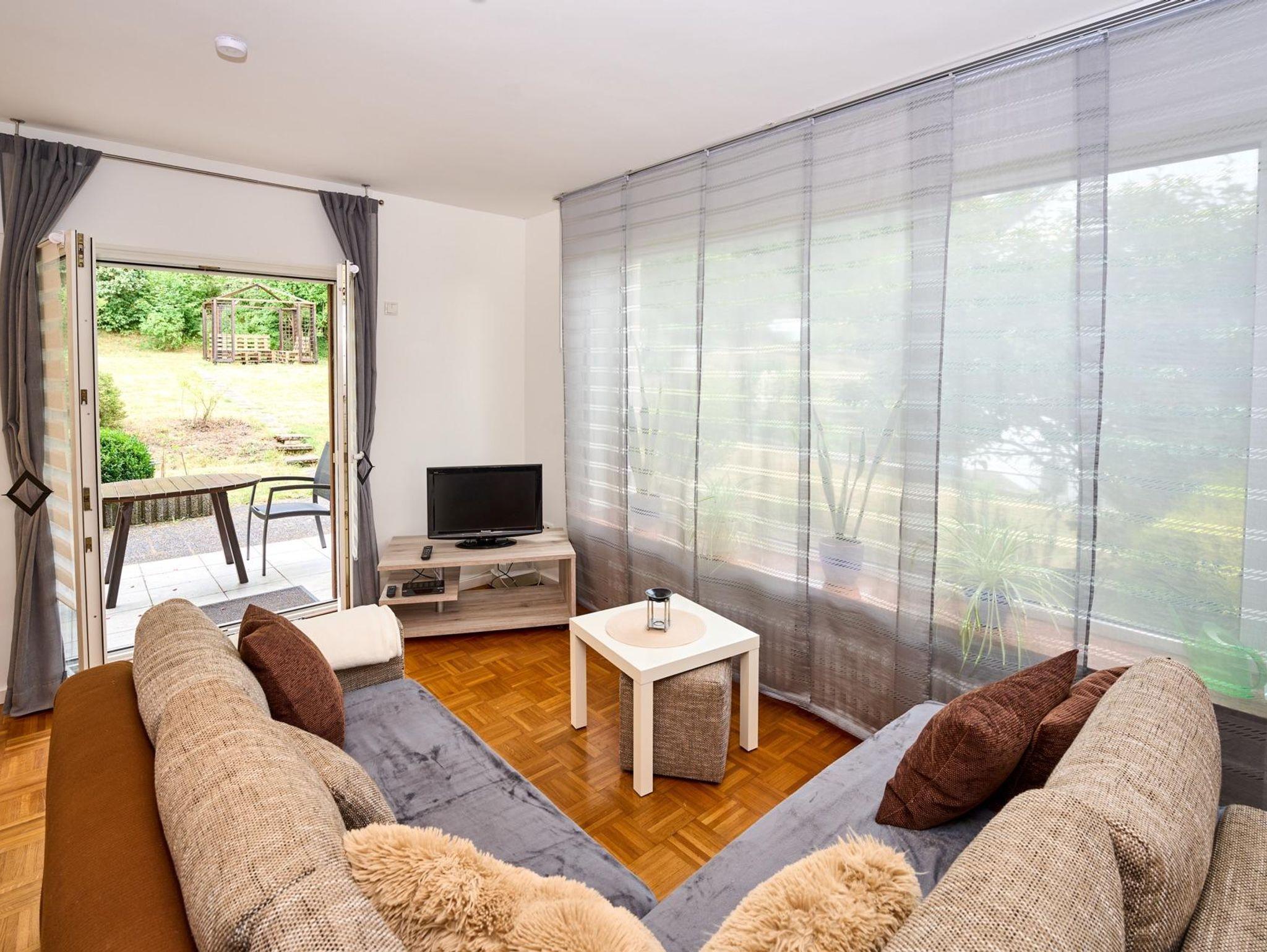 Schöne, ruhig gelegene Ferienwohnung im Herzen der Vulkaneifel - am Stadtrand von Daun. Die Parterre-Wohnung in einem freistehenden Zweifamilienhaus verfügt über einen großen Garten mit direktem Zugang zum Wald.